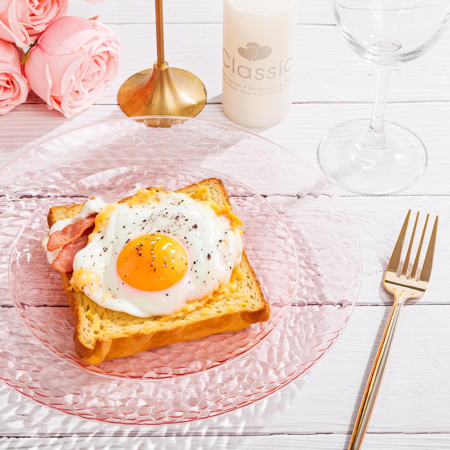 - Satisfaction Guaranteed: We stand by our product! If you're not completely satisfied with our clear pink fancy plastic plates, just let us know, and we'll make it right. Your gatherings deserve the best – and that's our promise to you!