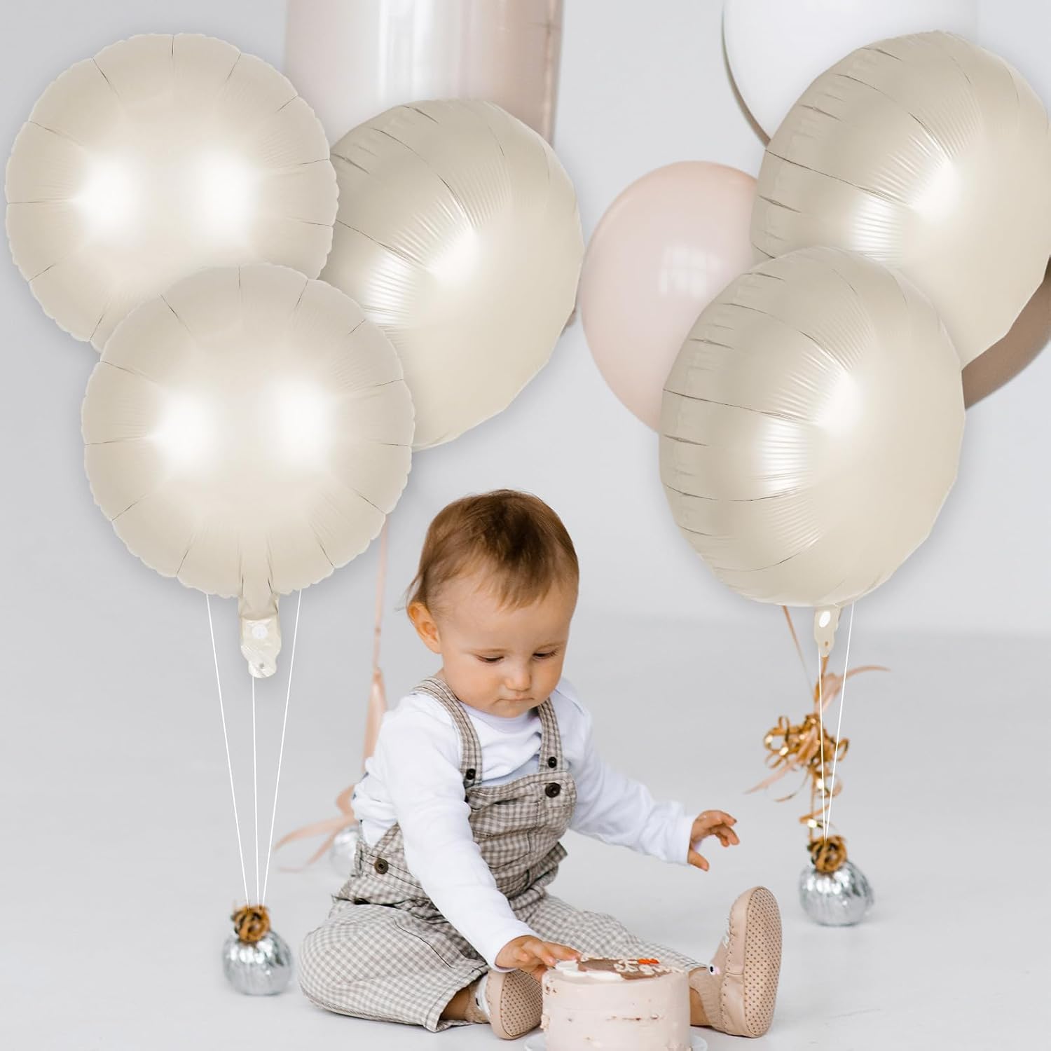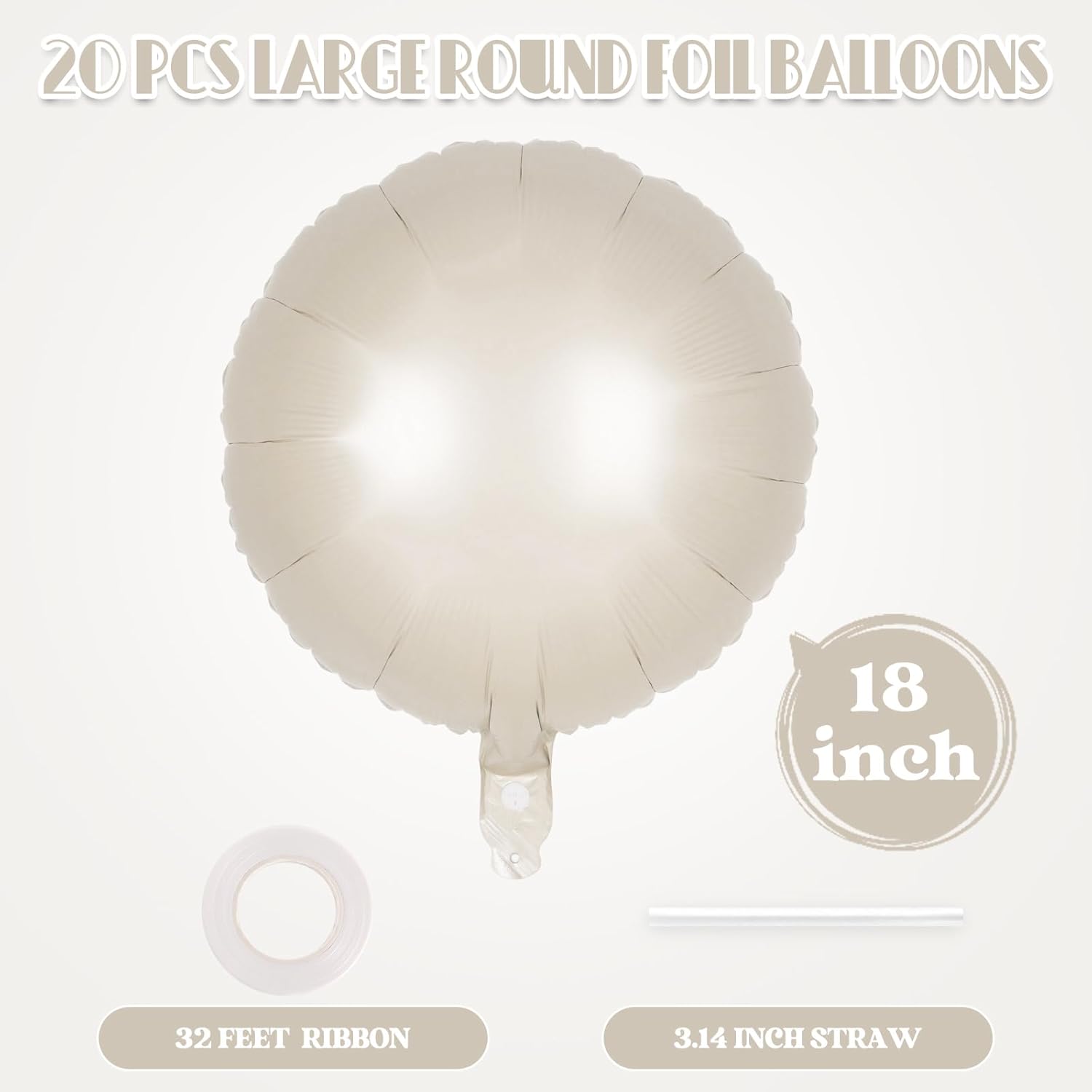 20 Pcs Cream White Round Balloons,18 Inch Round Foil Balloon,Giant Round Mylar Balloon Helium Balloons for Birthday Party Baby Shower Wedding Decorations (Cream)