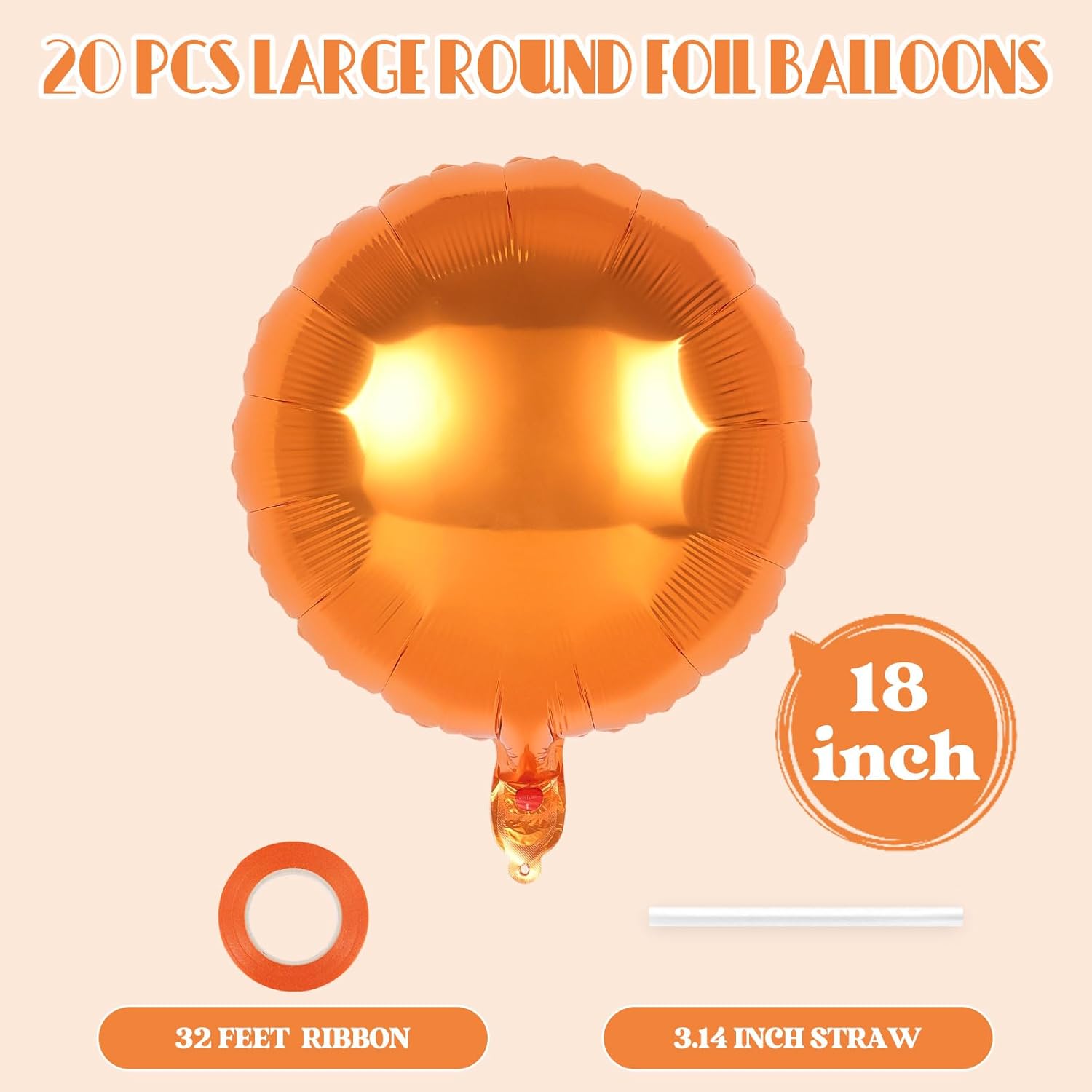 20 Pcs Round Shaped Balloons,18 Inch Round Foil Balloon,Giant Round Mylar Balloon Helium Balloons for Birthday Party Baby Shower Wedding Decorations (Orange)