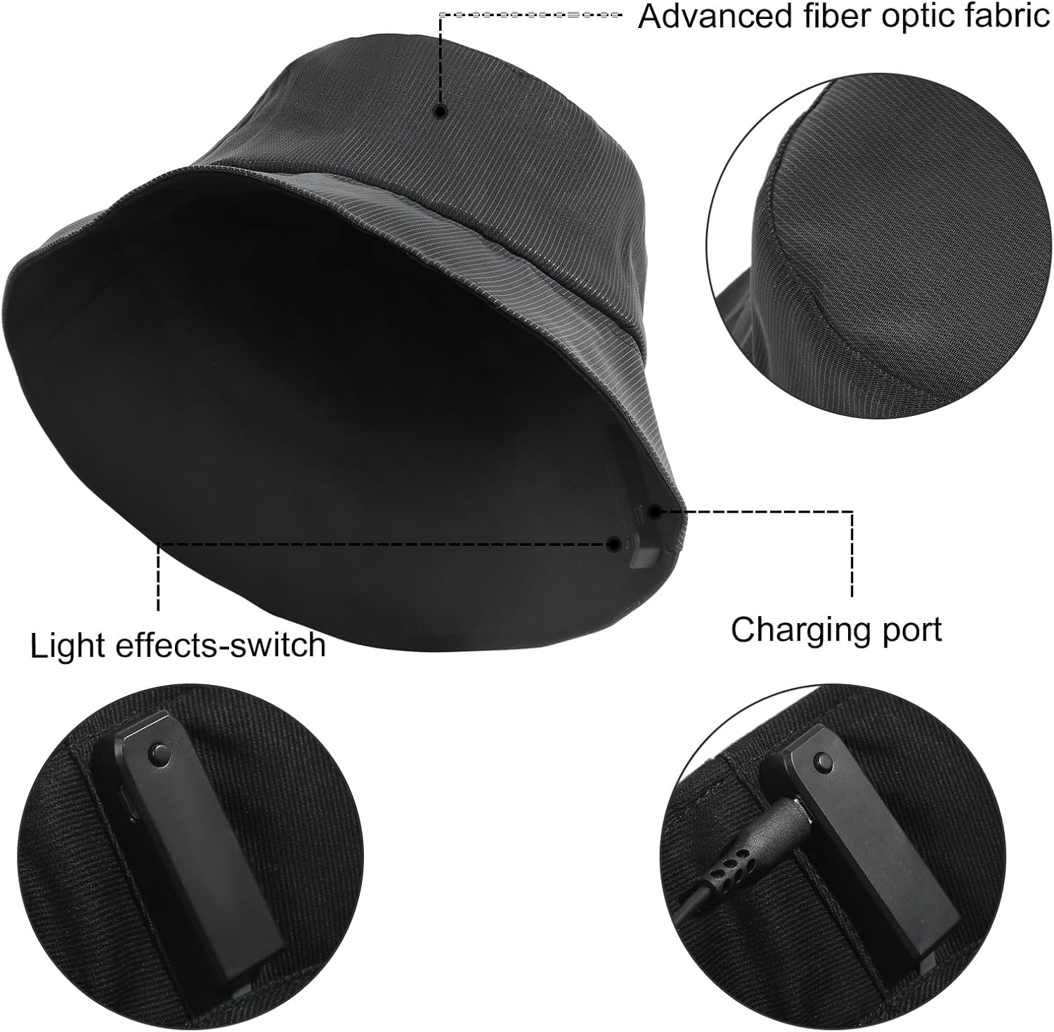 - SIZE: The luminous bucket hat is unisex. It is for men or women. It fits almost all, easy to wear. No hot, No Radiation, Harmless to the Body and durable. Suitable for head circumference of 56-58cm.