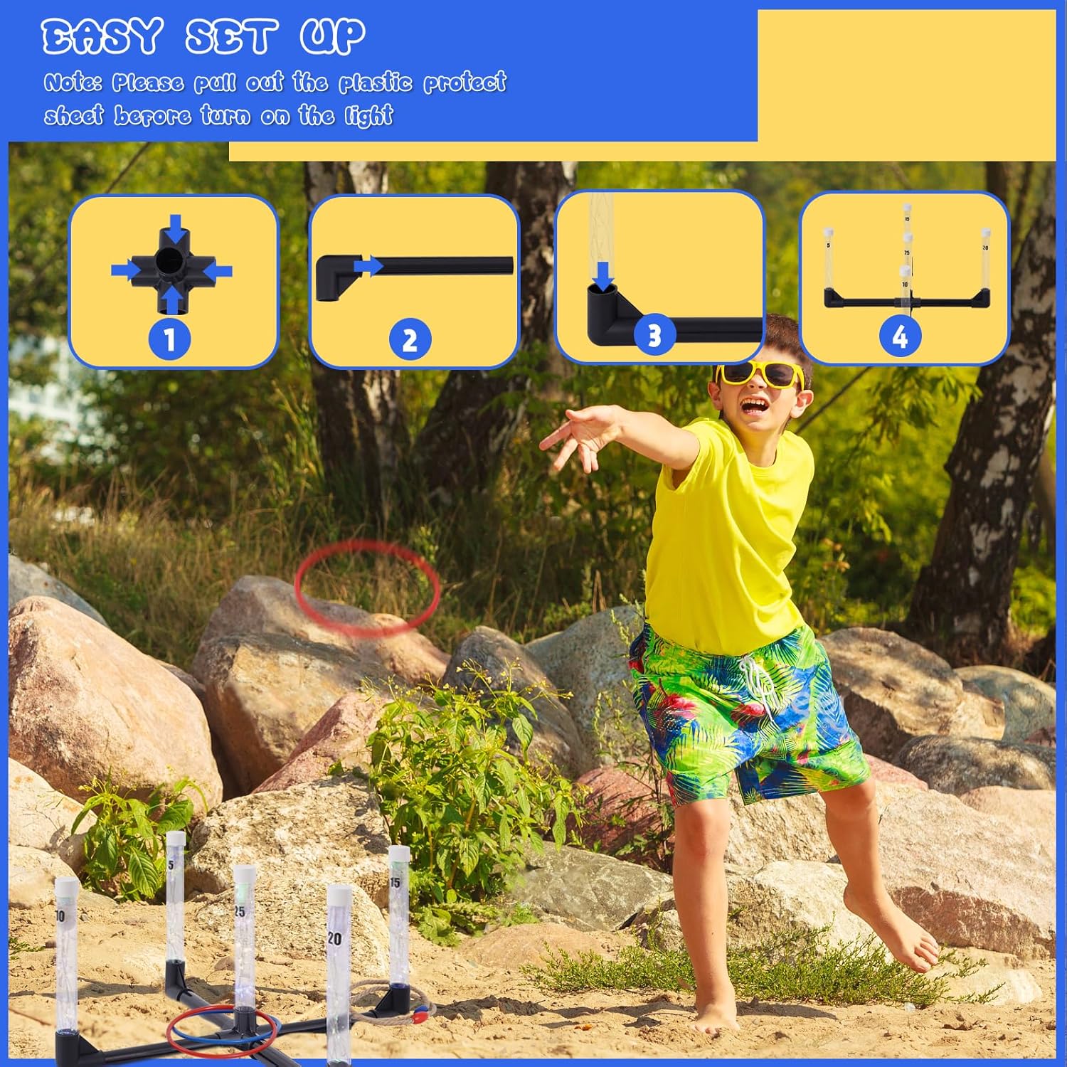 YEEA LED Ring Toss Game for Kids, Adults | Glow in The Dark LED Outdoor Yard Games | Perfect for Camping, Beach, and Backyard Family Gatherings