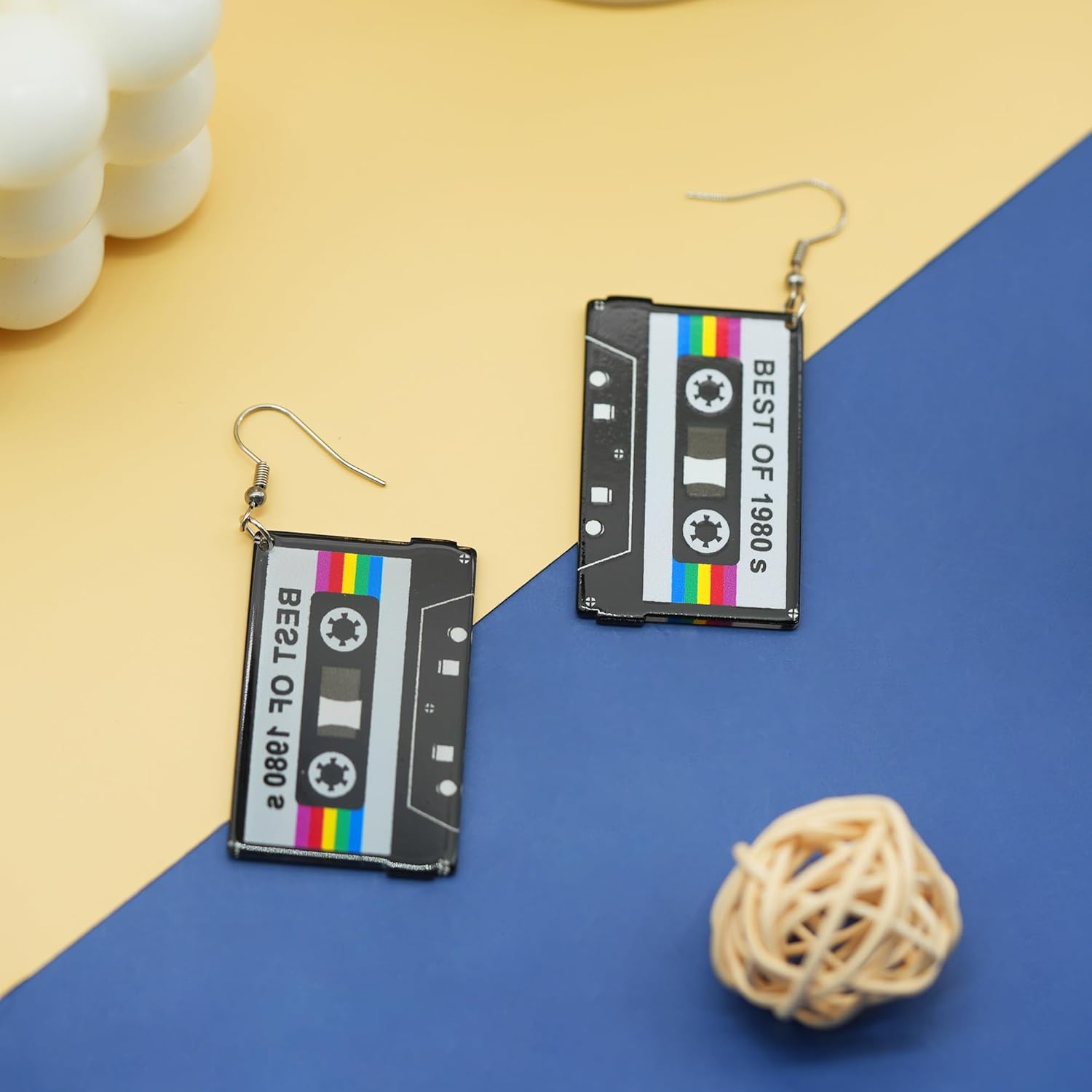 80s 90s Neon Earrings for Women Retro Cassette Tape Hoop Earring Candy Color Lightweight Acrylic Stud Dangle Earrings for 80S Costume Outfits Dancing Glow Party Accessories