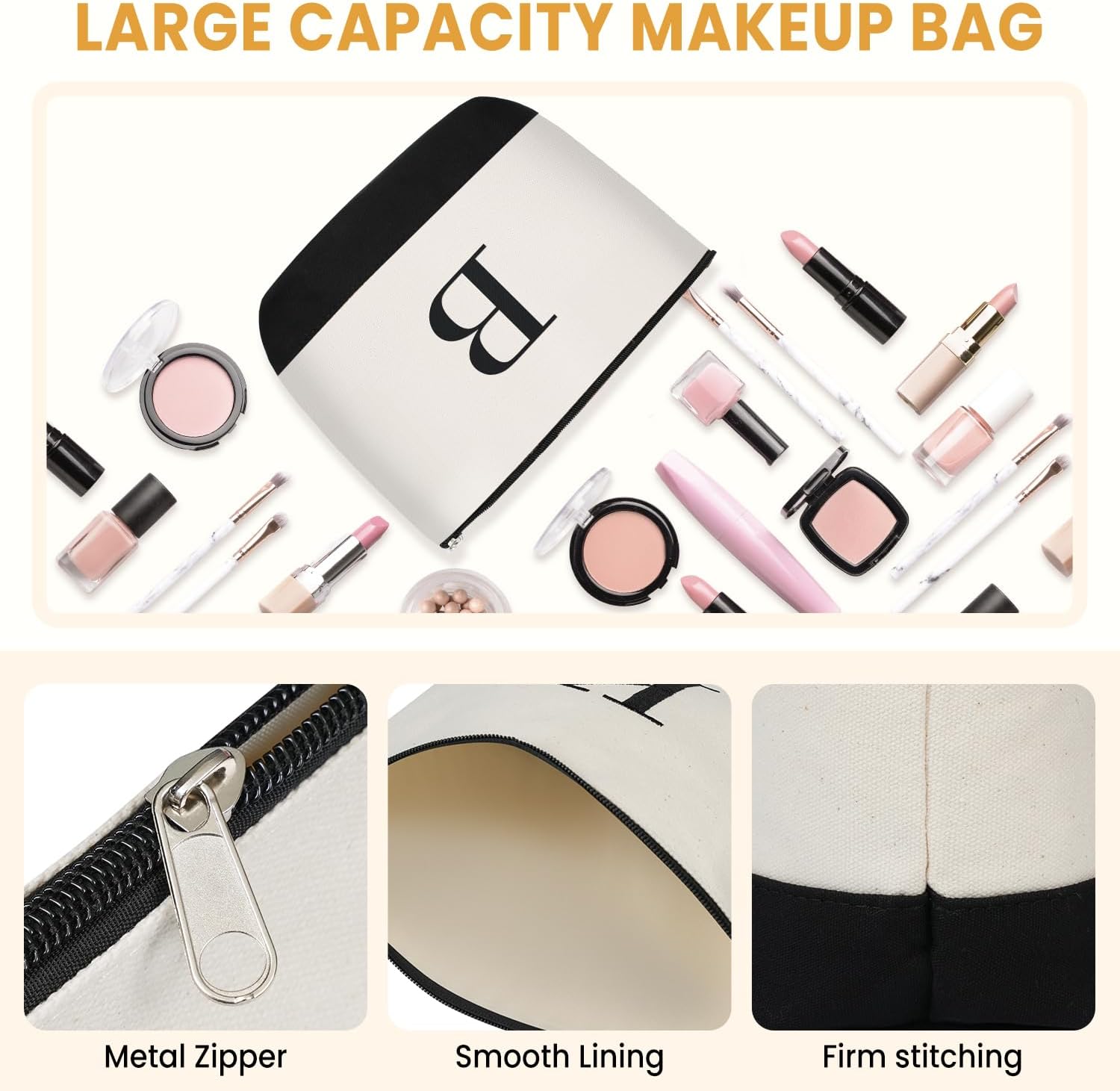 BAGAIL Initial Tote Bag, Personalized Birthday Gifts for Women, Teacher, Friends, Mom, Wedding, Monogrammed Beach Bag