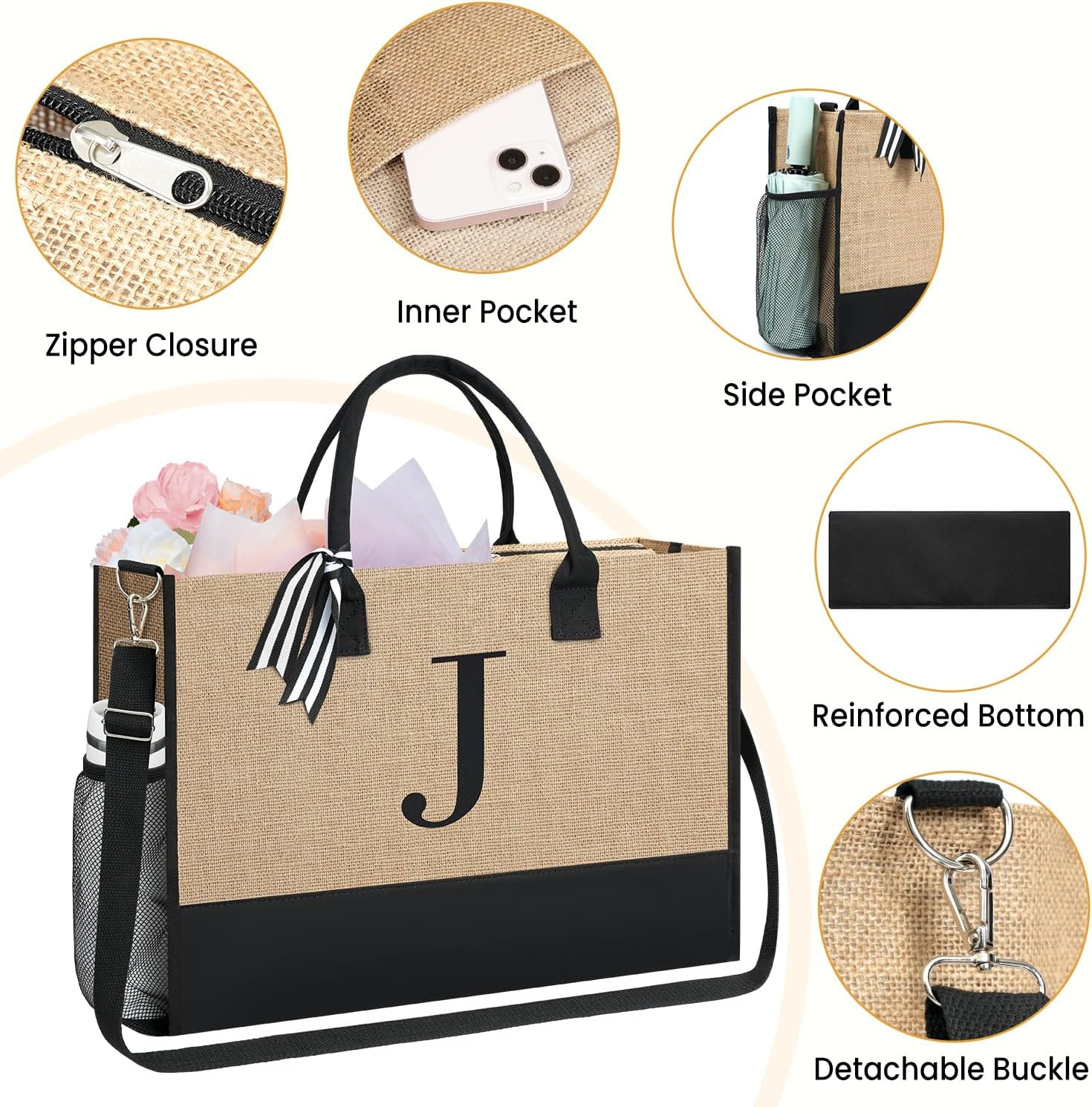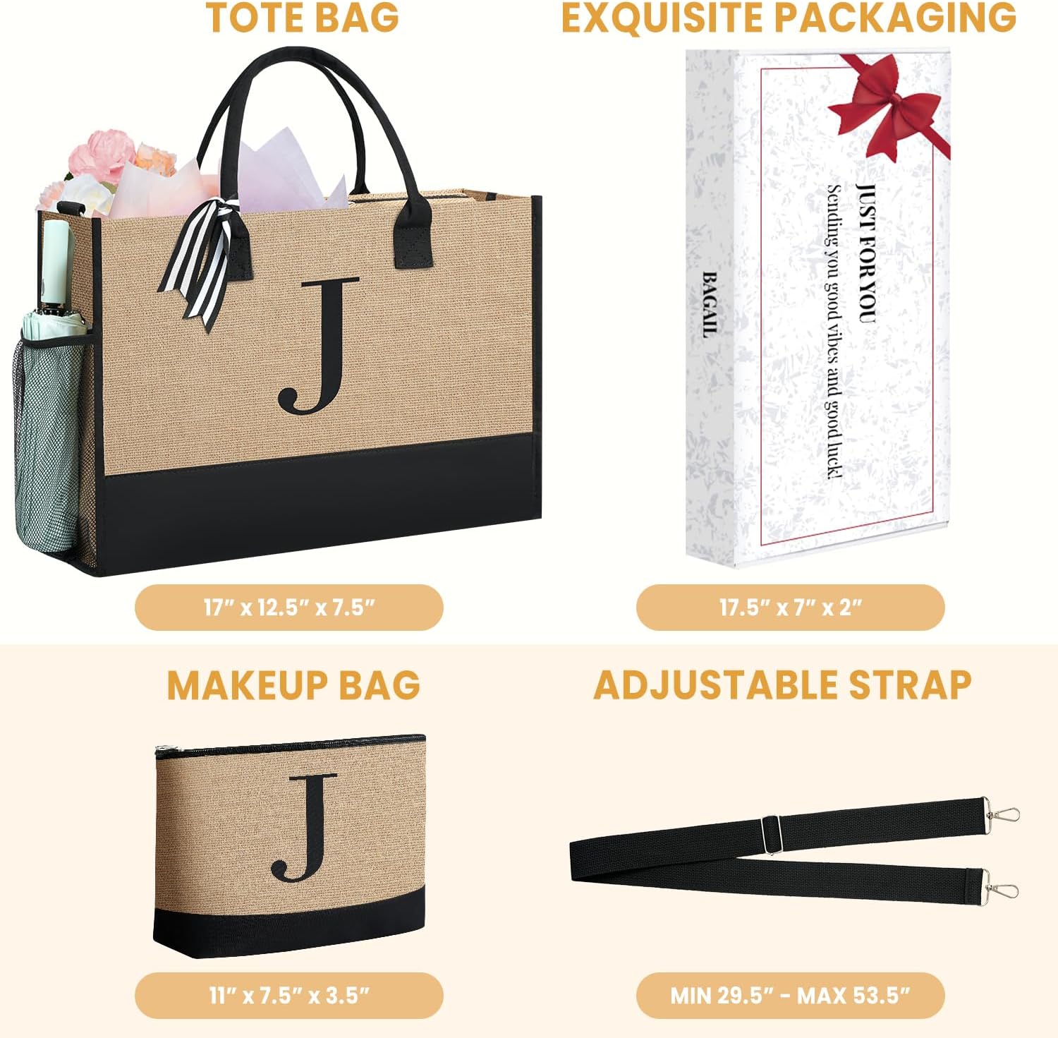 BAGAIL Initial Tote Bag, Personalized Birthday Gifts for Women, Teacher, Friends, Mom, Wedding, Monogrammed Beach Bag