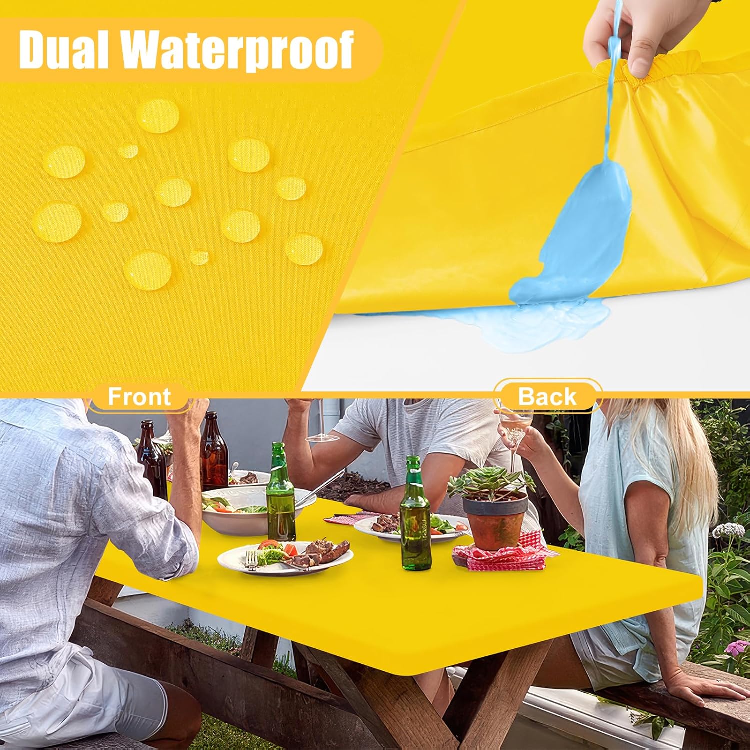 Rectangle Table Cloth, Waterproof Elastic Fitted Tablecloth for 8 Foot Folding Tables, Washable Polyester Tablecloths for Picnic, Camping, Outdoor (Yellow, 30"x96")