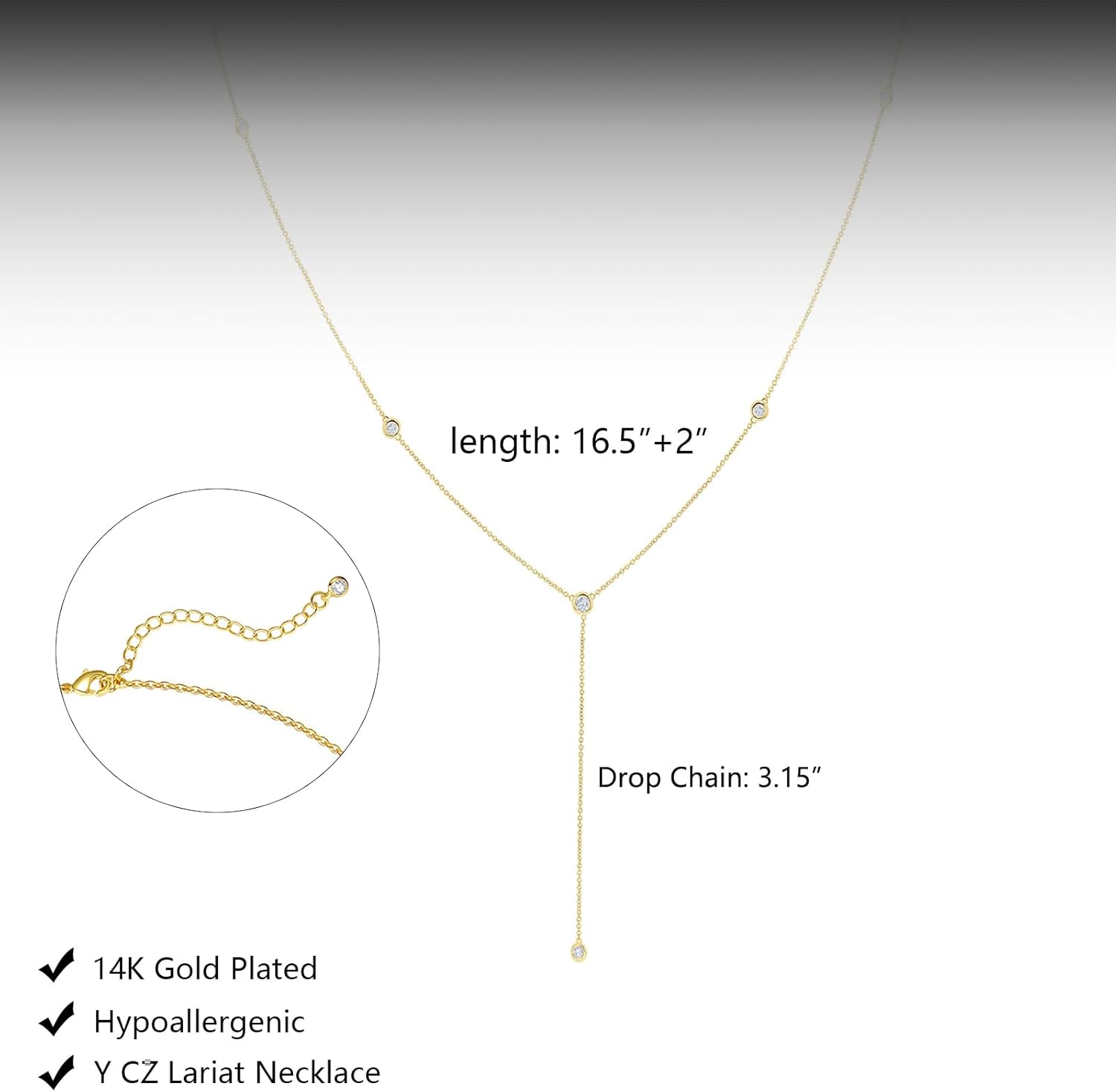 - Gold Lariat Necklace Design: Our long gold layered necklace is an easy everyday necklace that packs a punch of style. The unique lariat Y CZ necklace that works well with V-necks. Whether for everyday wear or special occasions, it exudes confidence and charm for women.