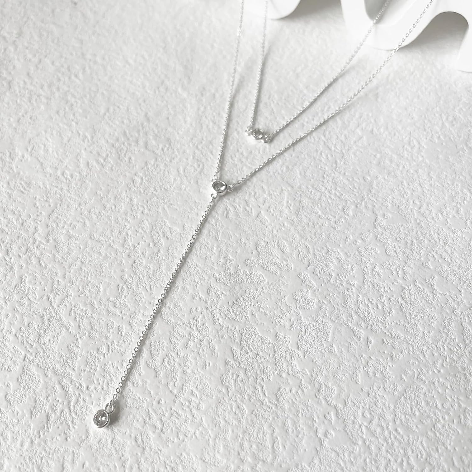 - Long Layered Necklaces Design: This silver lariat necklace is a simple and stylish piece of jewelry that can adds a touch of elegance to any outfit with its unique design and sparkling cz diamond. Whether for everyday wear or special occasions, combining sophistication and charm.