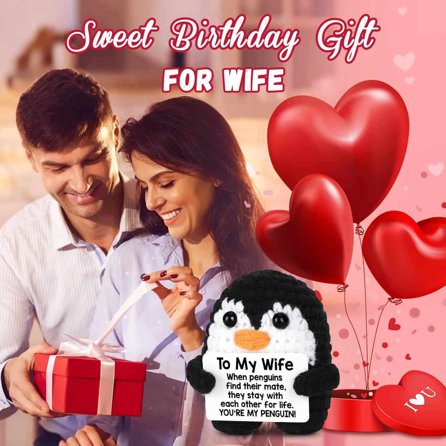 - Sweet Birthday Gifts for Her Wife: Bid farewell to dull gifts this year! Our handmade crochet penguins are sure to bring a huge smile to your wife's face and convey just how much you cherish her. These lovely little penguins are like sweet pocket-sized angels, spreading warmth and positive vibes wherever she goes. It's the perfect funny gift for your wife, new wife, or beloved partner