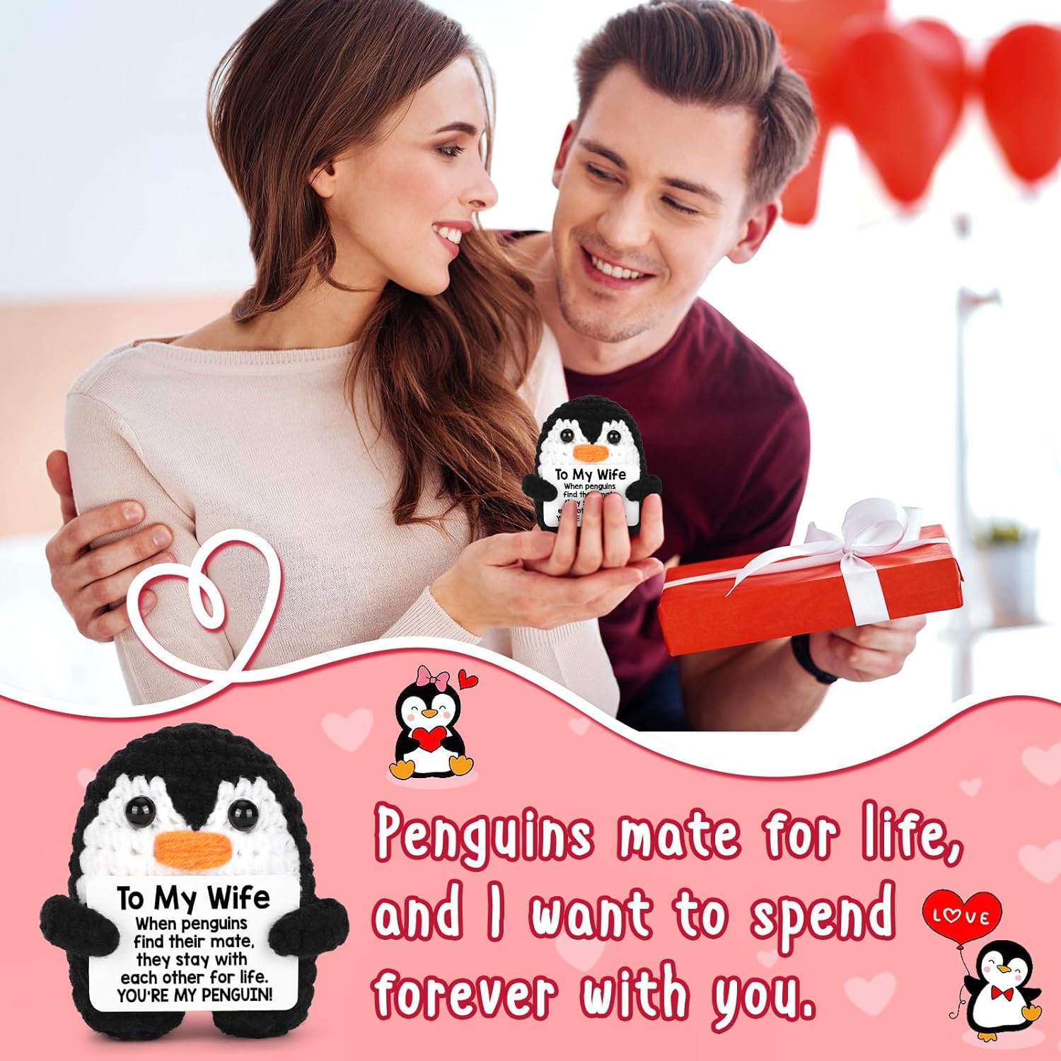 Gifts for Her Wife from Husband Birthday Christmas, to My Wife Handmade Crochet Emotional Mini Funny Penguin, Romantic Wedding Anniversary Valentines Gifts for Women Her, Small Cute Love Sign Decor