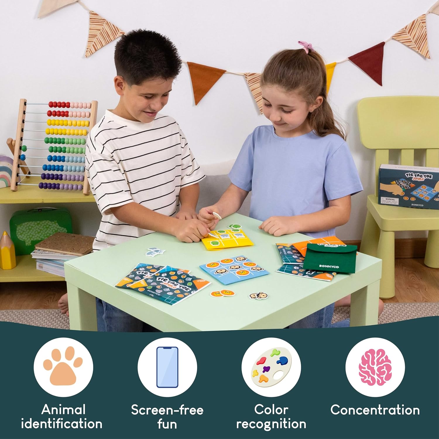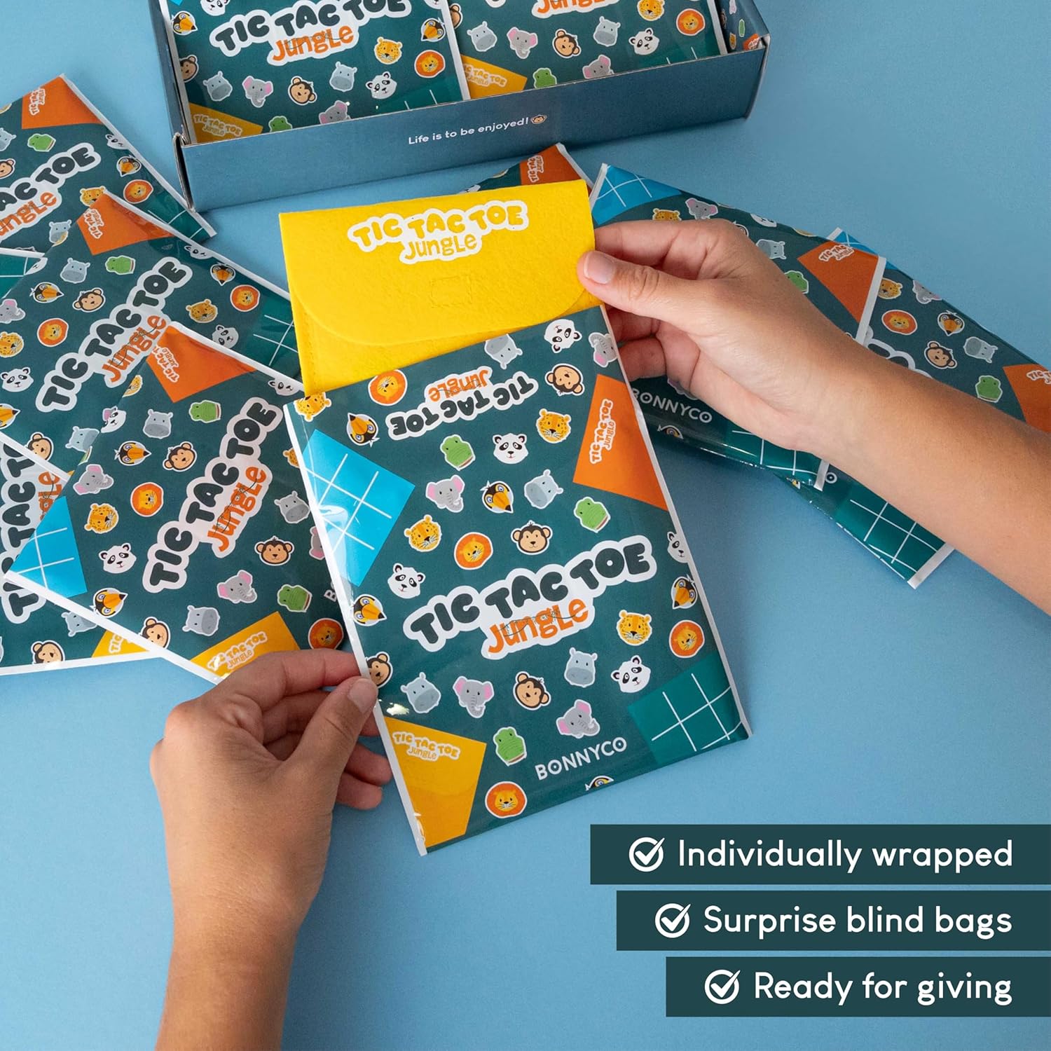BONNYCO Tic Tac Toe Game Pack 16 Jungle Animals Kids Party Favors. Safari Goodie Bags Stuffers for Kids 3-5 4-8, Goody Bag Stuffers Pinata. Return Gifts for Birthday Party, Mini Games Bulk Travel