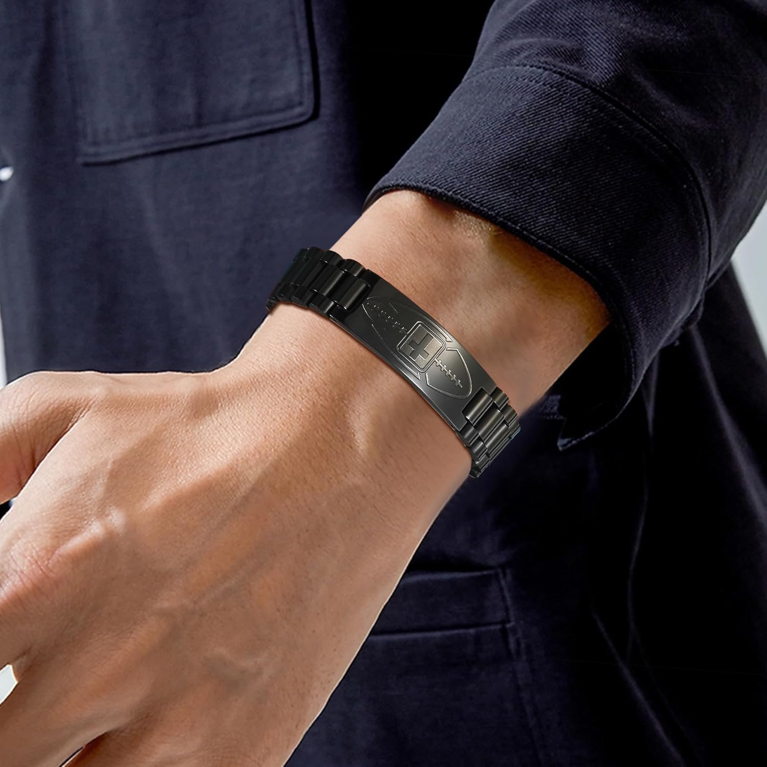 • 【HIGH QUALITY MATERIALS】The mens bracelet is made of high quality 316L stainless steel, which is strictly polished and will not hurt your skin, non-toxic, harmless, non-irritating and non-allergic to the human body. The bracelet is highly corrosion resistant, waterproof and sturdy and does not easily lose color, it can be worn and kept for a long time.