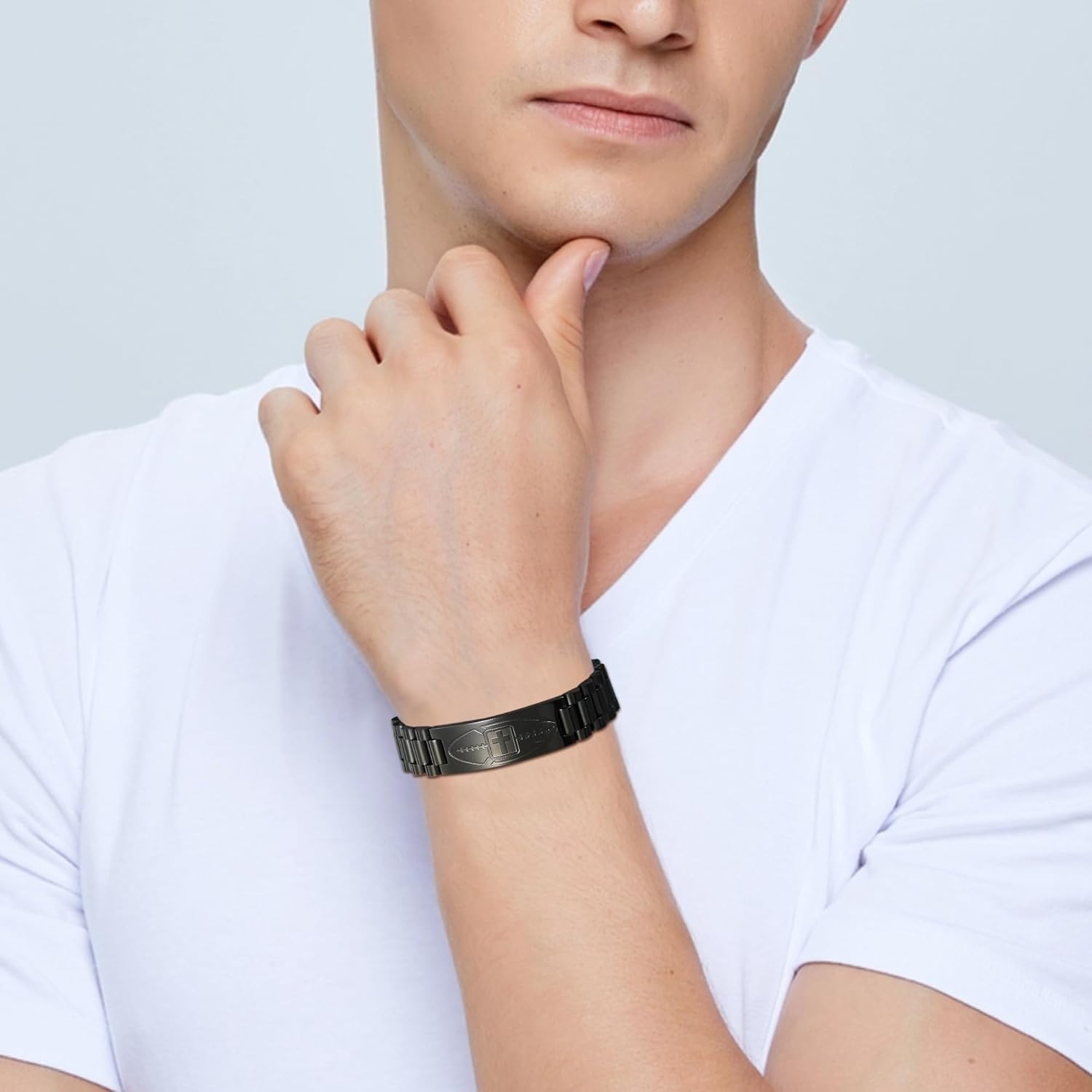 • 【HIGH QUALITY MATERIALS】The mens bracelet is made of high quality 316L stainless steel, which is strictly polished and will not hurt your skin, non-toxic, harmless, non-irritating and non-allergic to the human body. The bracelet is highly corrosion resistant, waterproof and sturdy and does not easily lose color, it can be worn and kept for a long time.