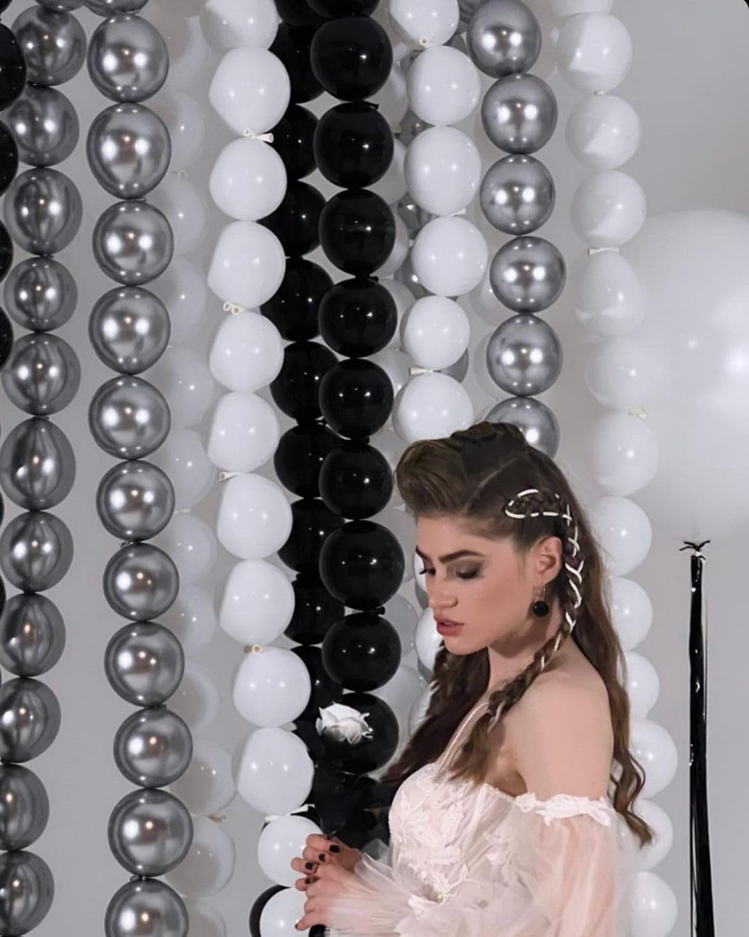 - ๐ซDiverse assembly - The linking balloons is an excellent choice for balloon chain decoration, balloon wall creation, and various balloon model making. It can be used as a decoration for balloon chains, it can be hung on the ceiling alone to form a hanging balloon chain, can be used for balcony balloon chain decoration, and can be freely matched and connected the black balloons and white balloons according to different styling needs.