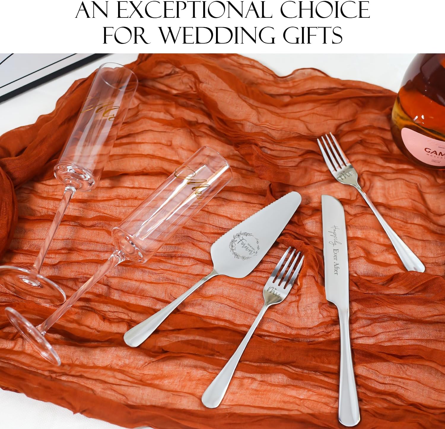 - If you are searching for the perfect wedding gift that combines Elegance,practicality and a touch of fun.Look no futher than this delightful wedding gift set for couples Specifically designed for newlyweds.This Wedding Champagne Flutes set in two beautifully crafted Champagne glasses labeled MR and MRS,making it an ideal choice for celebrating their new life together.