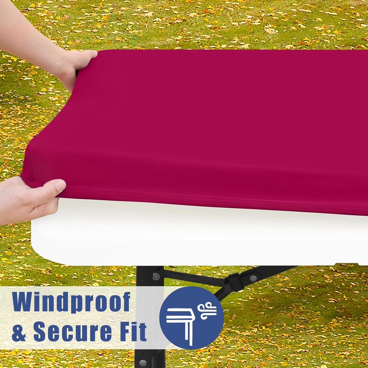 Spandex 6 Foot Rectangle Table Cloth 2 Pack, Elastic Fitted Tablecloths for Picnic, Stretch Washable Patio Table Cover for Outdoor, Camping, Banquet and Parties (Fuchsia, 30"x72")
