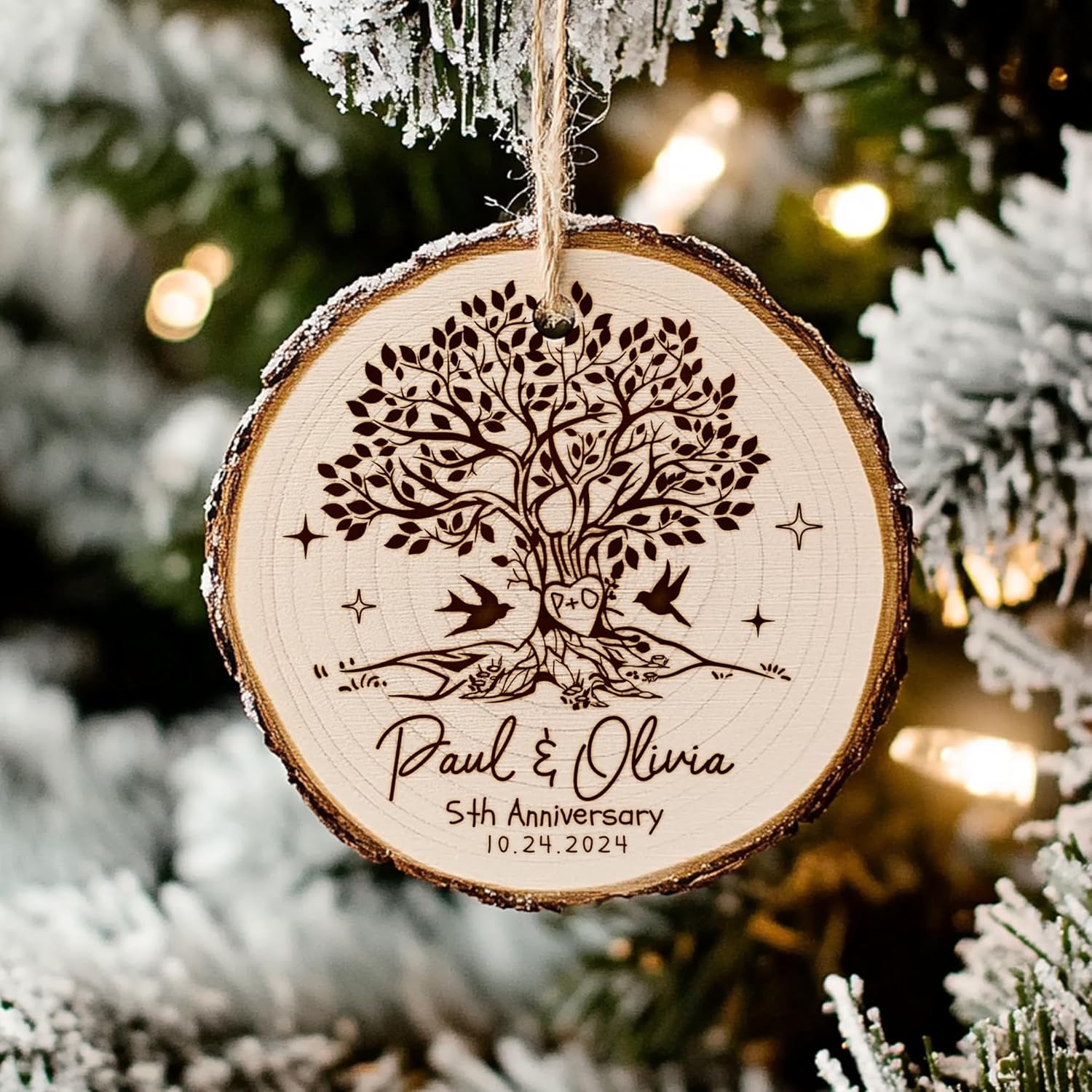 Personalized 5th Anniversary Wooden Ornament - 5 Year Anniversary Wedding Gifts for Couples, 5th Wedding Keepsake for Christmas Decoration