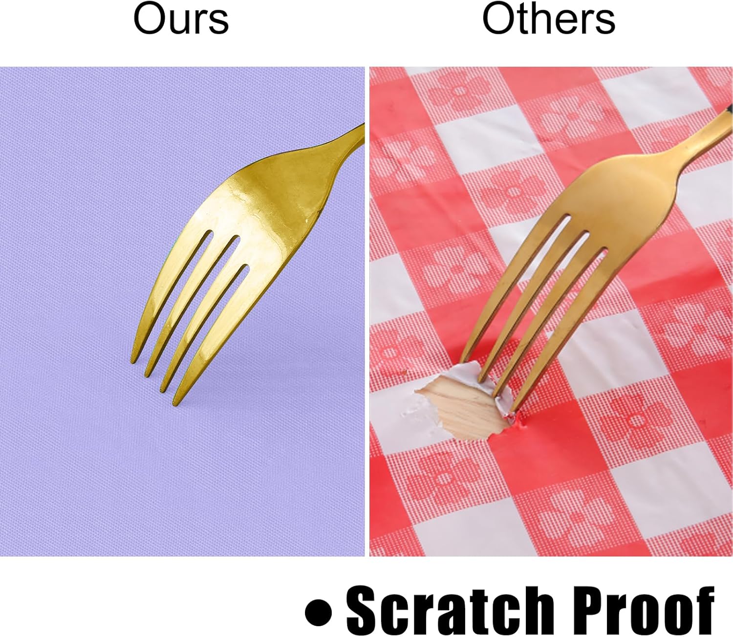 - [Sturdy & Functional] The surface of our tablecloth features premium vinyl material, which makes it more sturdy and protects your table from everyday wear and tear, and tableware scratches