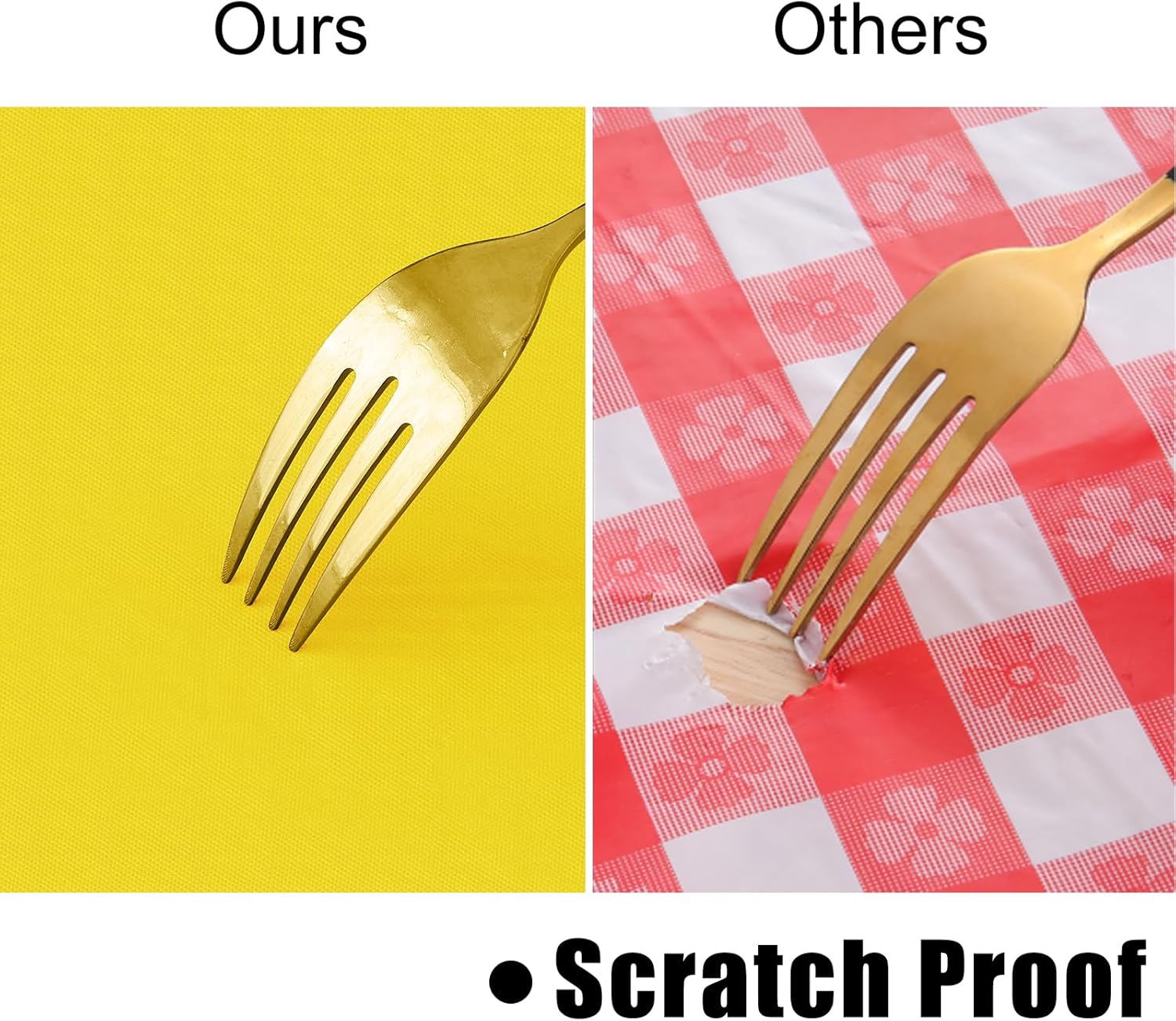 - [Sturdy & Functional] The surface of our tablecloth features premium vinyl material, which makes it more sturdy and protects your table from everyday wear and tear, and tableware scratches