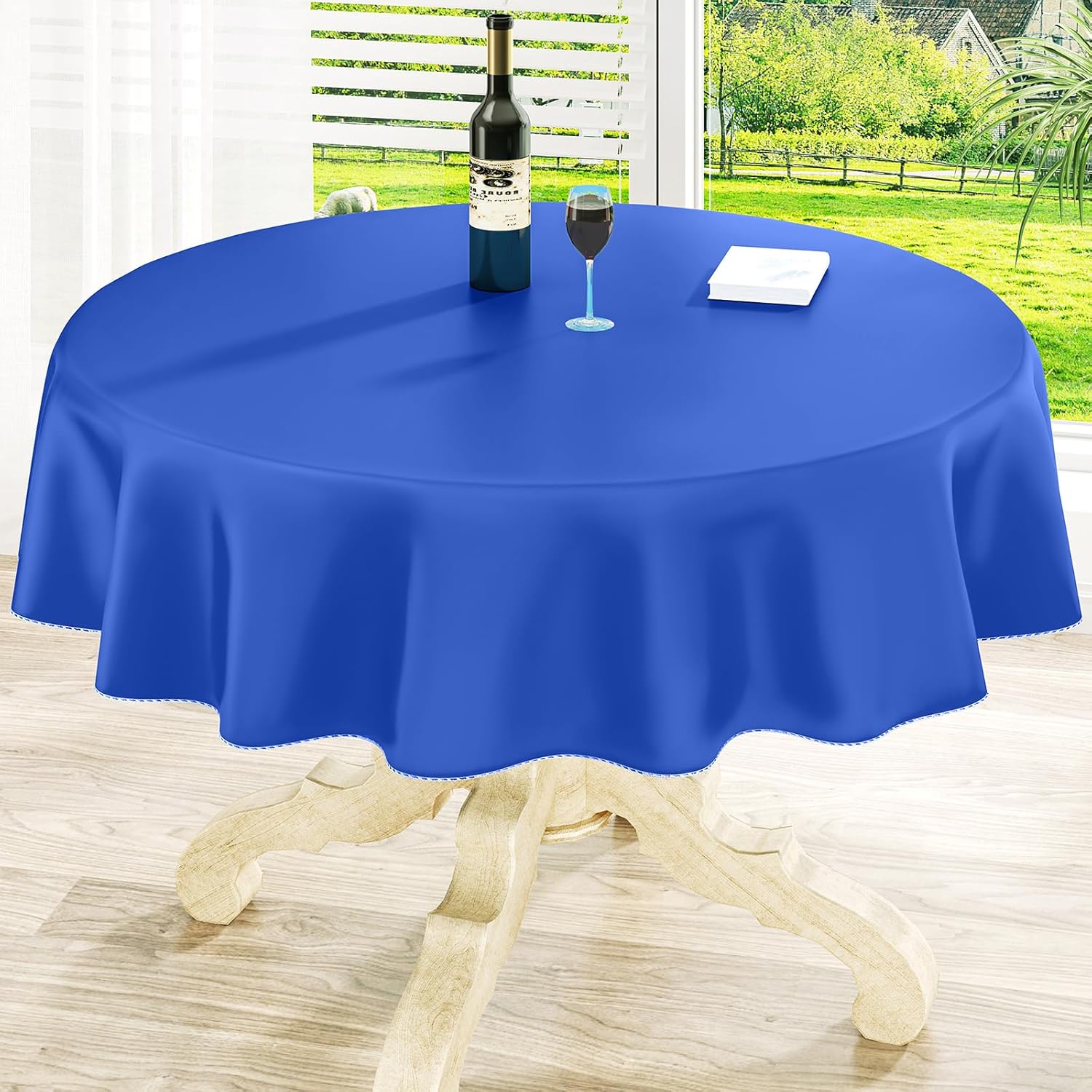 homing Round Vinyl Tablecloth, Waterproof Spillproof Plastic Flannel Backed Table Cloth, Wipe Clean Table Cover for Dining, Buffet Parties and Camping (Blue, 60")