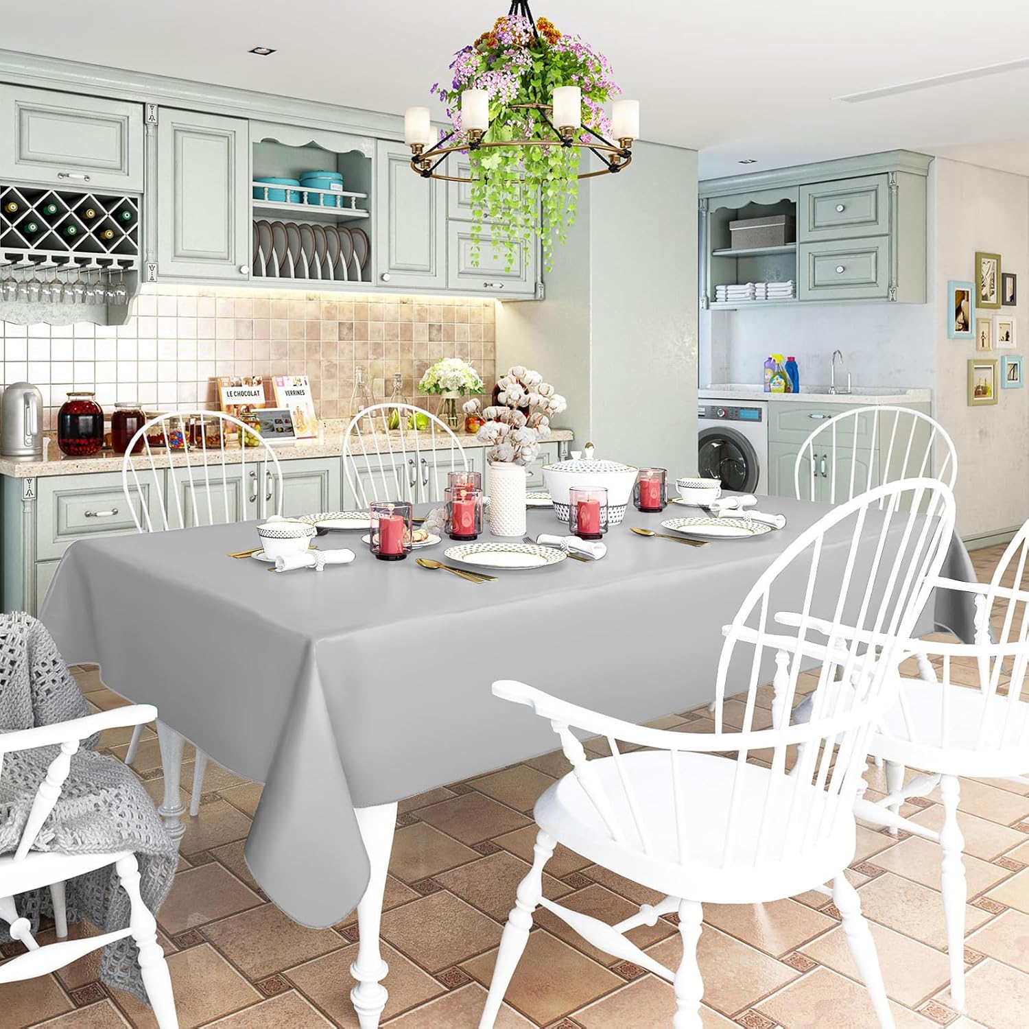 - [Sturdy & Functional] The surface of our tablecloth features premium vinyl material, which makes it more sturdy and protects your table from everyday wear and tear, and tableware scratches