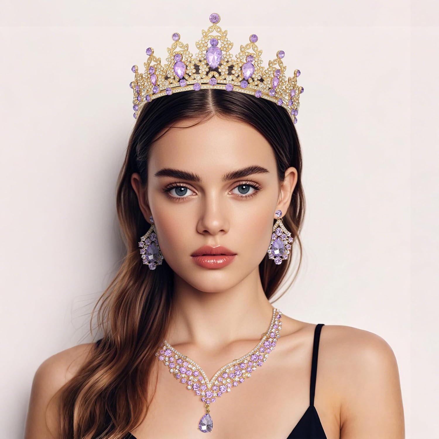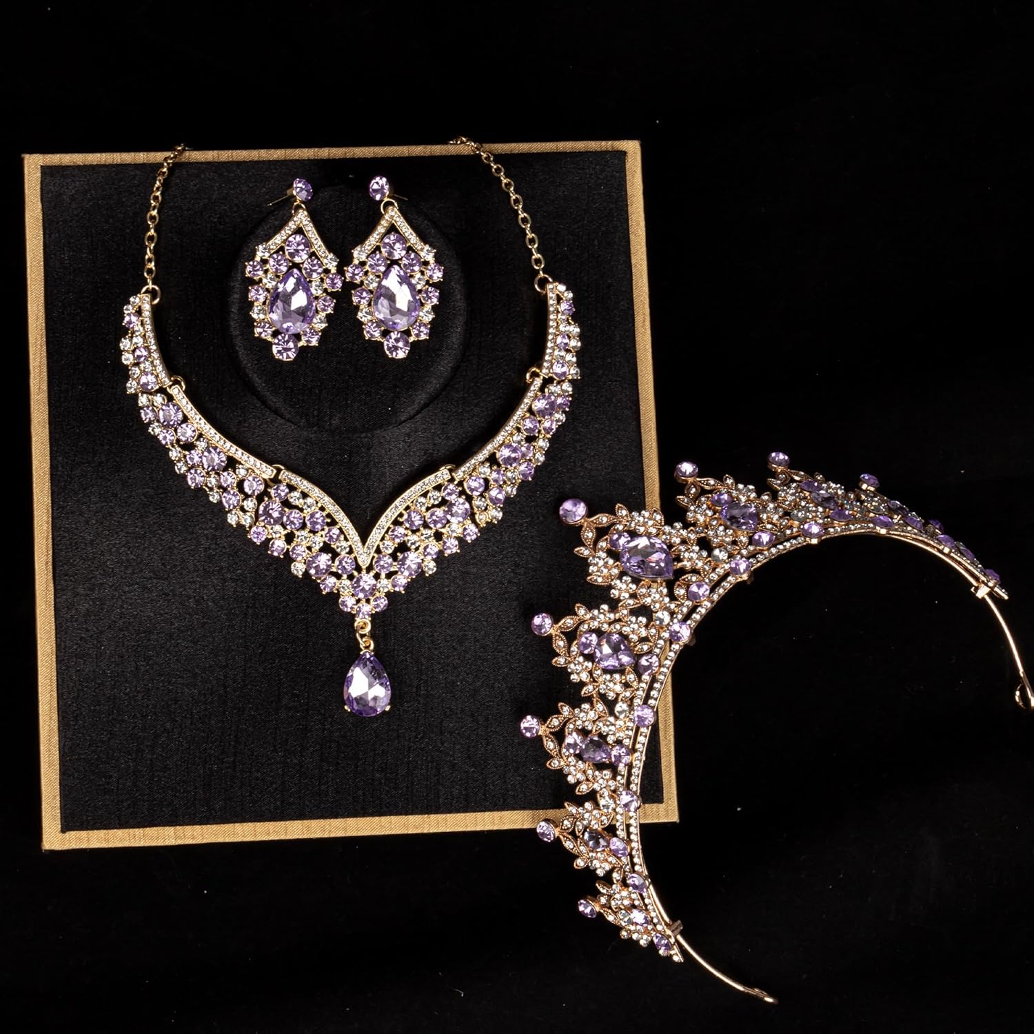 • Package Included: 1 X Crowns,1 X Necklace, 1 Pair earring ,Matching metal clip,Gifts box
