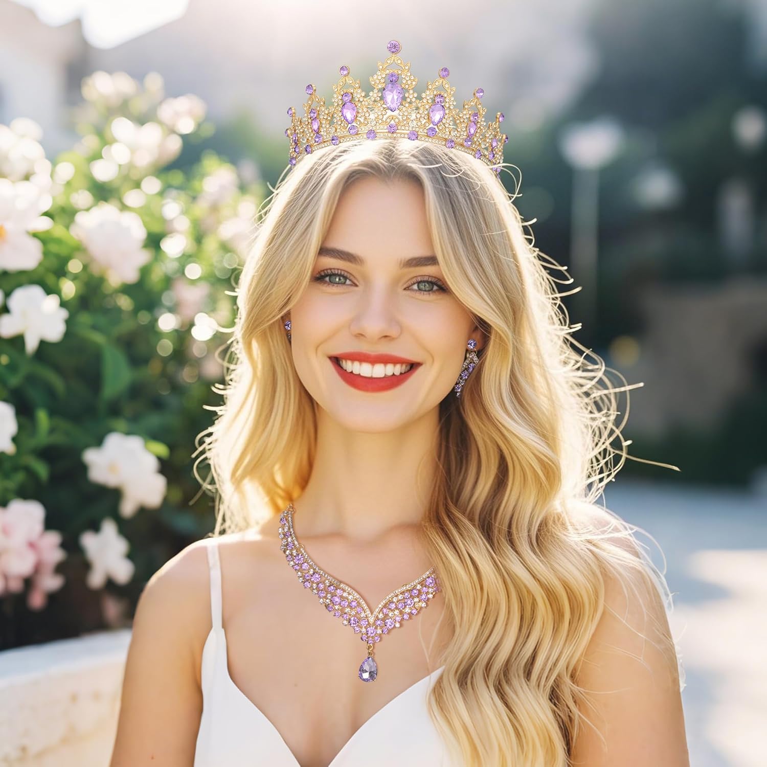 • Crowns and jewelry sets for for women: Classic Design,features classic styles and vivid colors, with a round hole on each side to securely hold hairpins in place, princess tiaras Made of high-quality Alloy and rhinestones, it is durable, sparkly, and comfortable to wear