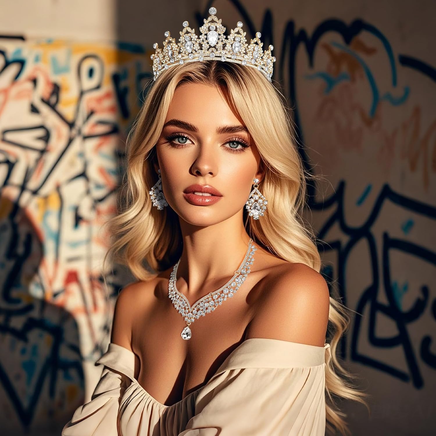 - Package Included: 1 X Crowns,1 X Necklace, 1 Pair earring ,Matching metal clip,Gifts box