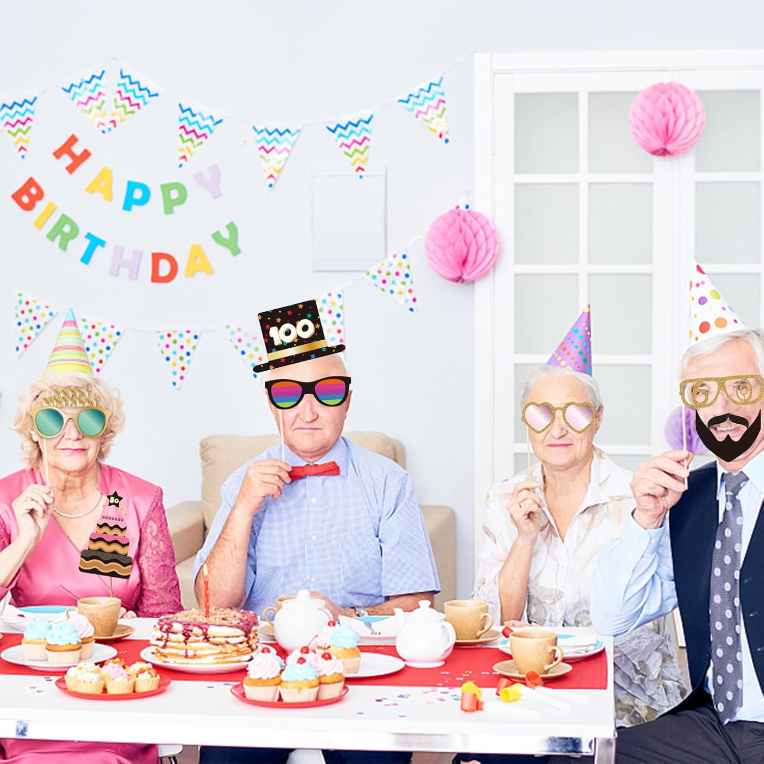 BRT Bearingshui 100th Birthday Party Photo Booth Props Accessories, 100th Happy Birthday Party Decorations Supplies Favors