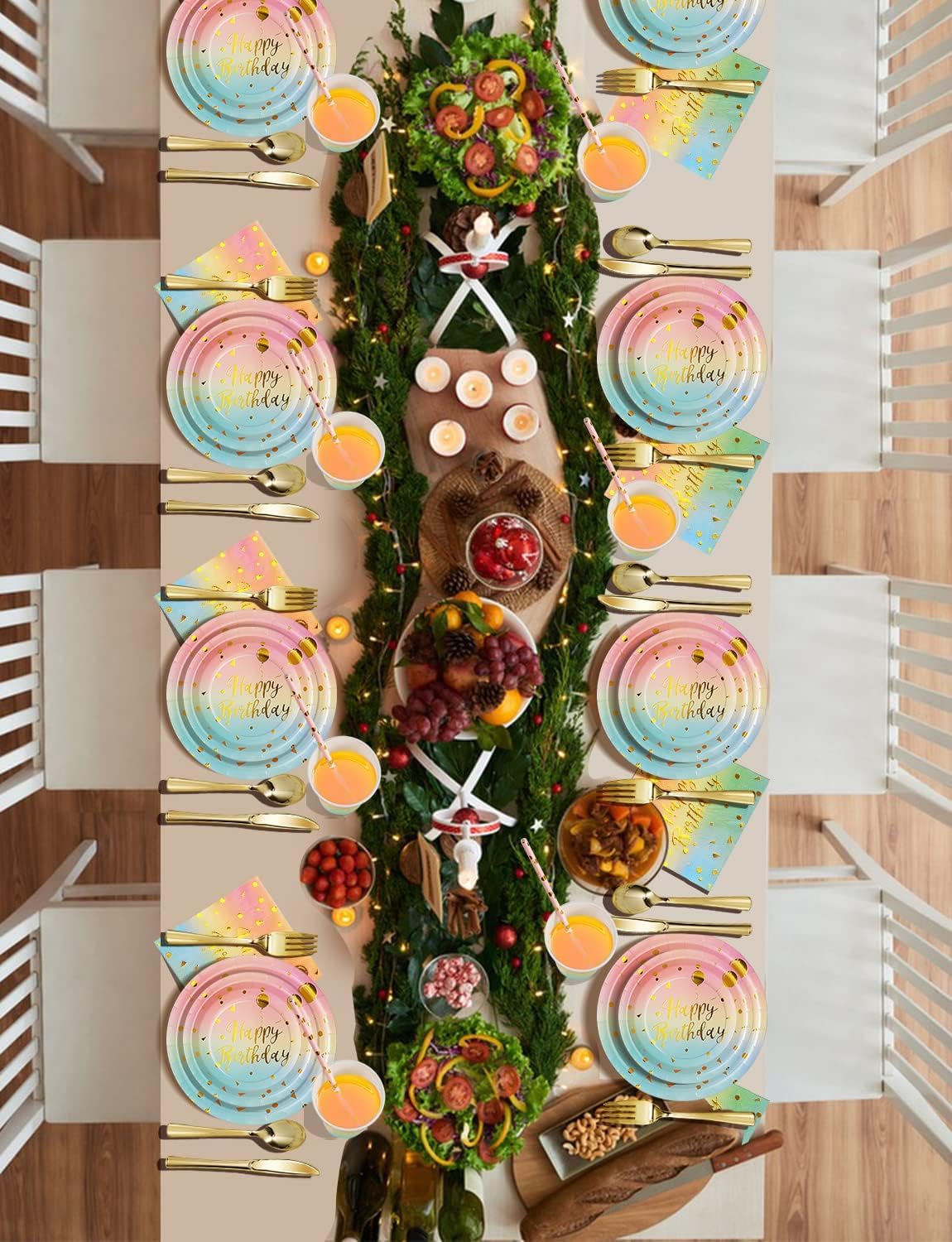 Birthday Party Tableware, 161 Pieces Rainbow gold Party Supplies, Party Dinnerware Sets Include Paper Plates Napkins Cups Silverware, for Shower Engagement Parties Decoration -20 Serves