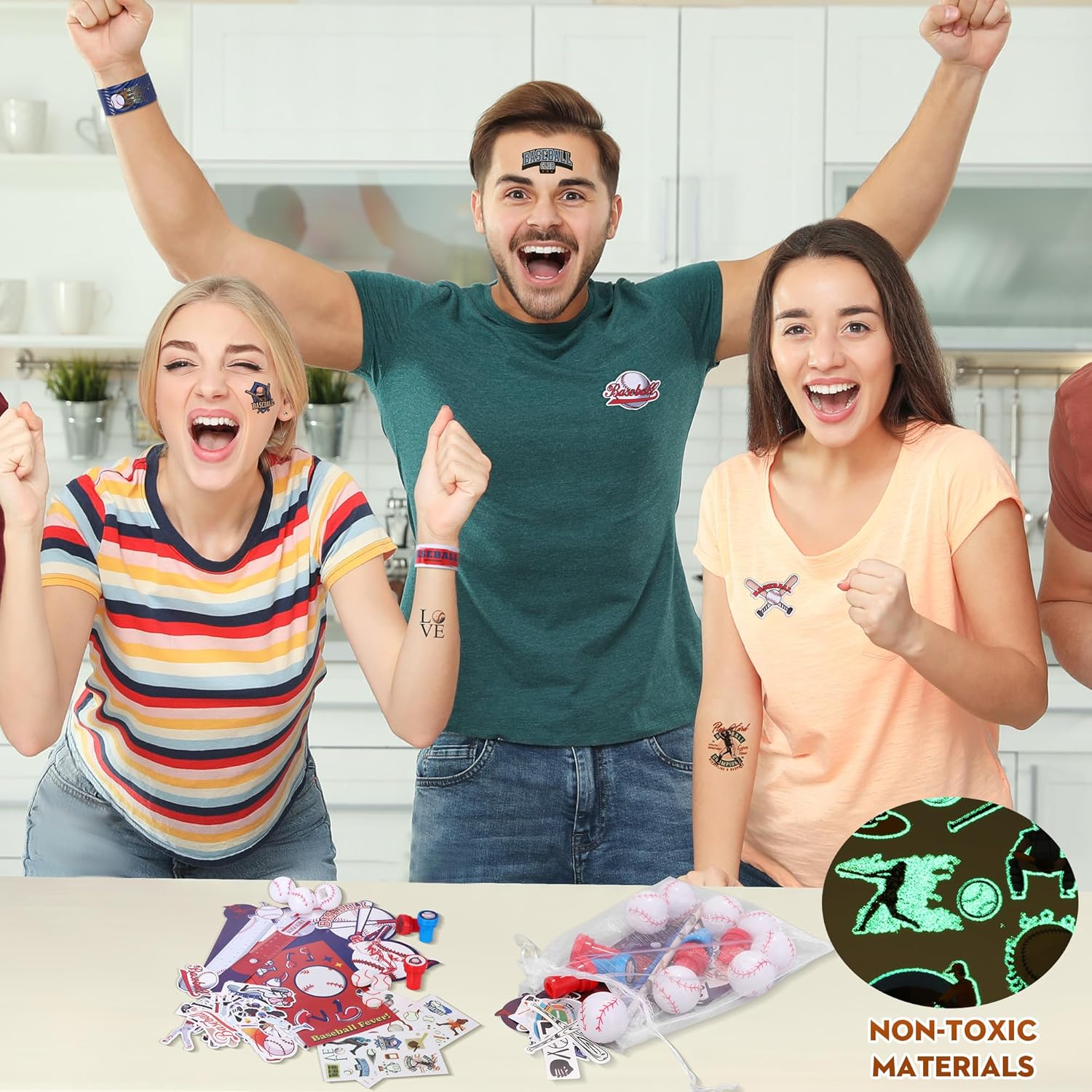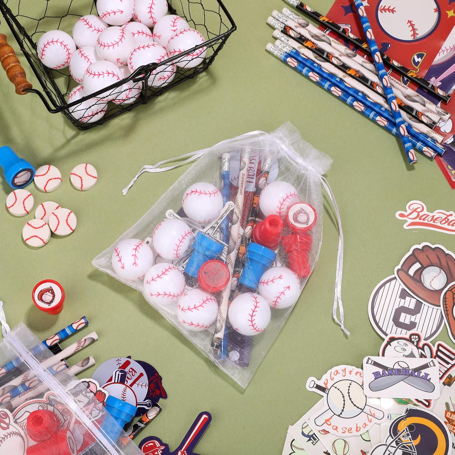 - Comprehensive party pack: this baseball party favors set includes 24 mini cards, 24 DIY stickers, 24 pencils, 24 sharpeners, 24 erasers, 24 slap bracelets, 24 stamps, 24 glow-in-the-dark tattoos, 24 rulers, 100 loose stickers, and 24 organza bags, enhancing your baseball-themed party with fun and flair