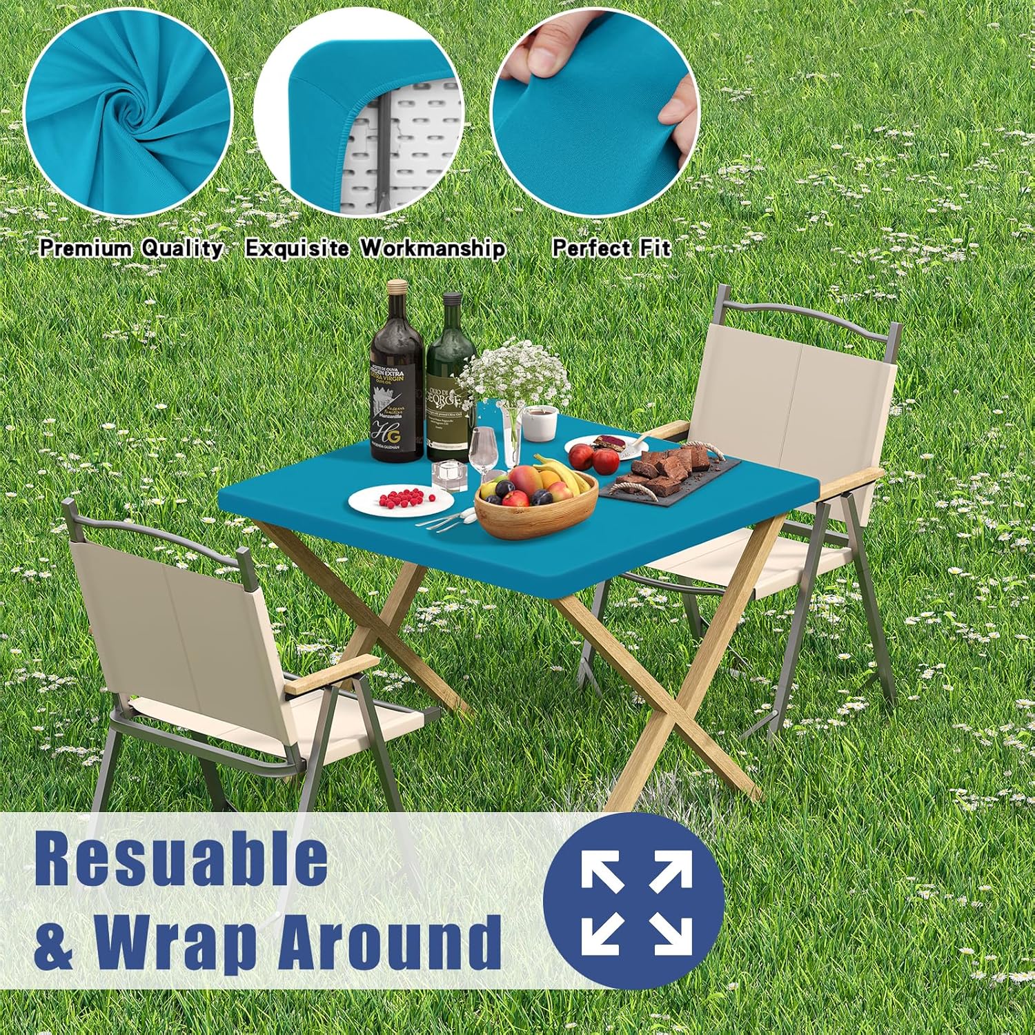 Spandex Picnic Table Cloth 2 Pack, Elastic Fitted Tablecloths for Square Tables, Stretch Washable Patio Table Cover for Outdoor, Camping, Banquet and Parties (Teal, 34"x34")