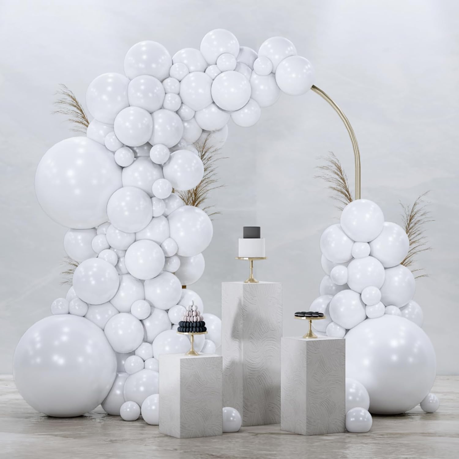 - 128 PCS WHITE BALLOONS IN DIFFERENT SIZES: Includes 18 inch (3 pcs), 12 inch (30 pcs), 10 inch (30 pcs), and 5 inch (65 pcs). These large and small balloons are perfect for creating stunning balloon garlands and arch kits
