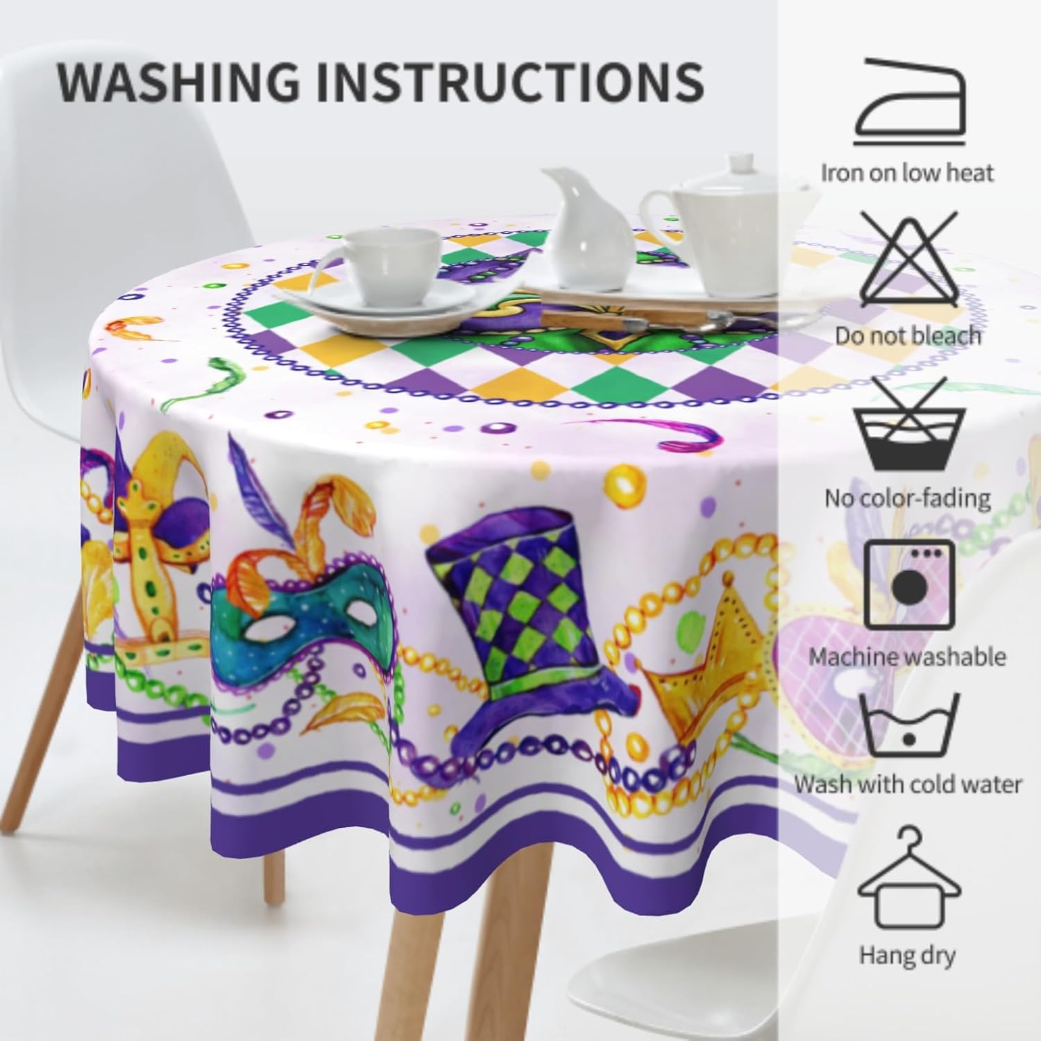 - PREMIUM MATERIAL: The mardi gras round tablecloth is made of high quality waterproof polyester fabric with a warm and soft feel.