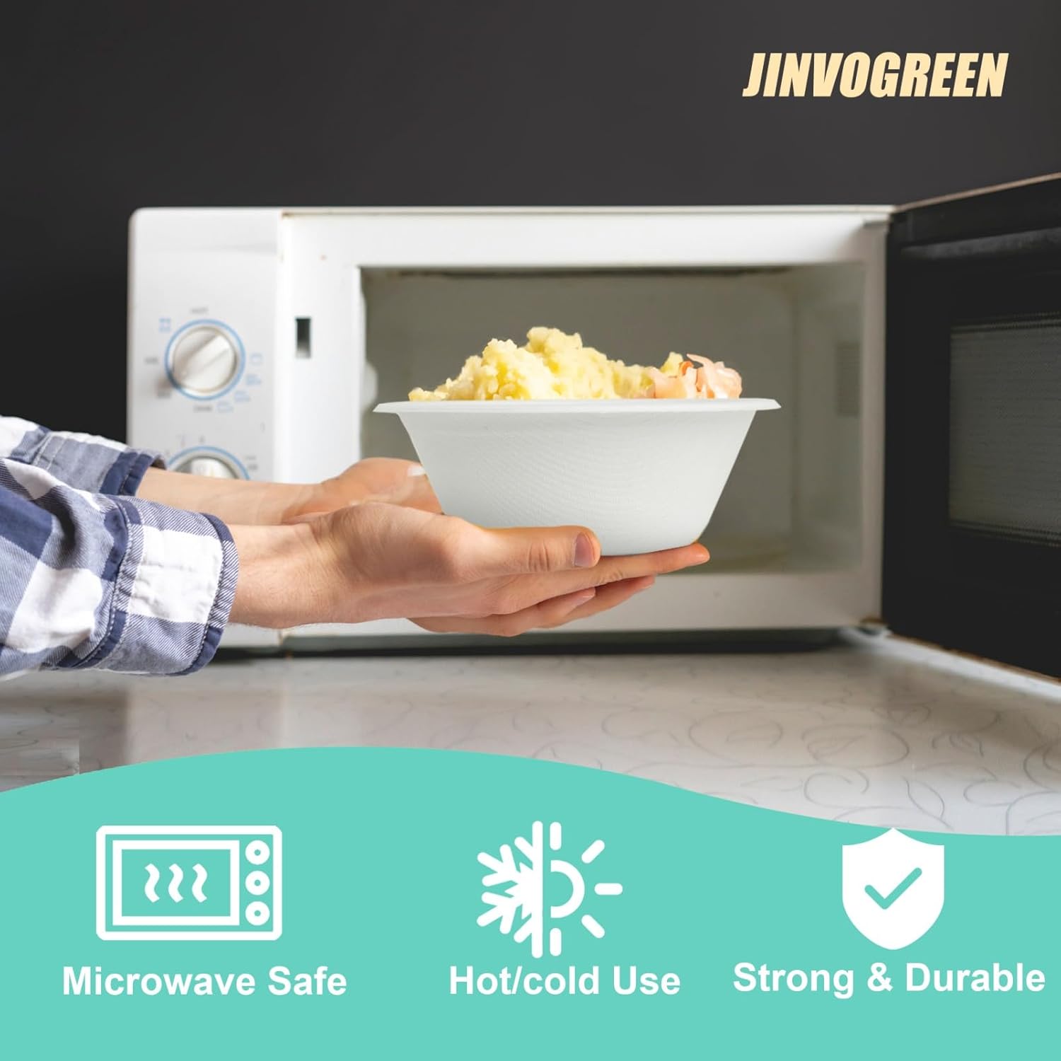 - Eco-Friendly Material: Dive into greener dining with our recycled bagasse bowls. No trees were cut—just leftover sugarcane turned into durable paper bowls. Embrace your commitment to the planet with every use. Perfect for eco-conscious individuals