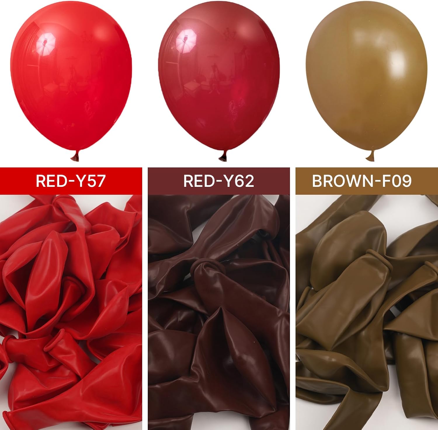 - 92 PCS BURGUNDY BALLOONS IN DIFFERENT SIZES: Includes 18 inch (2 pcs), 12 inch (20 pcs), 10 inch (25 pcs), and 5 inch (45 pcs). These large and small balloons are perfect for creating stunning balloon garlands and arch kits