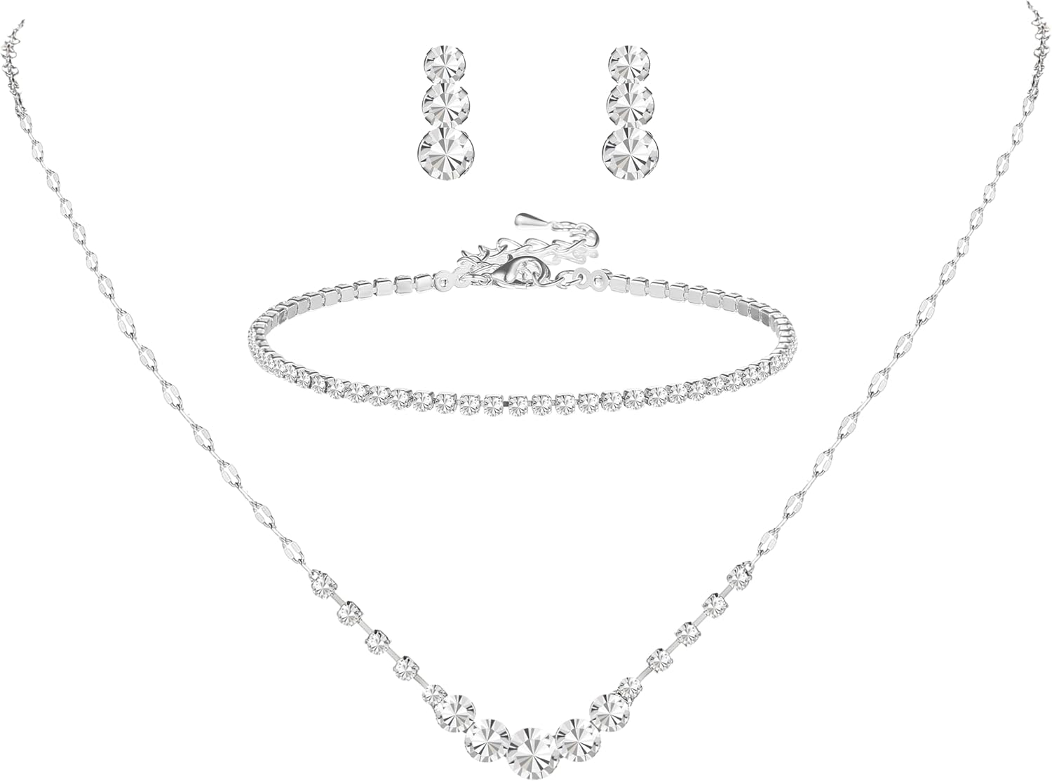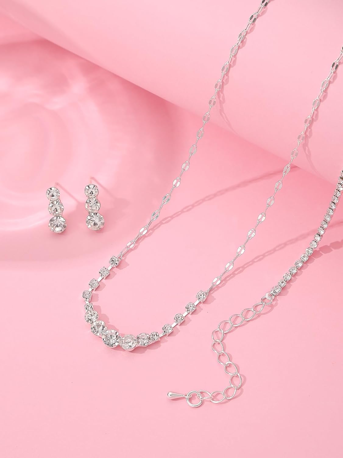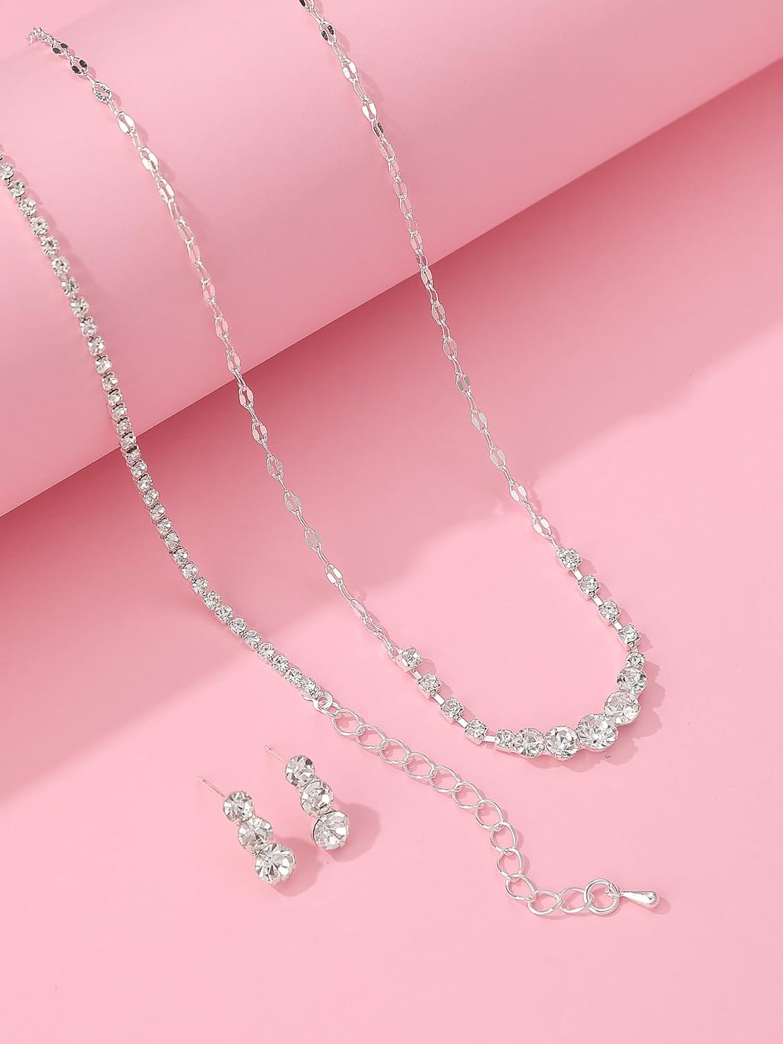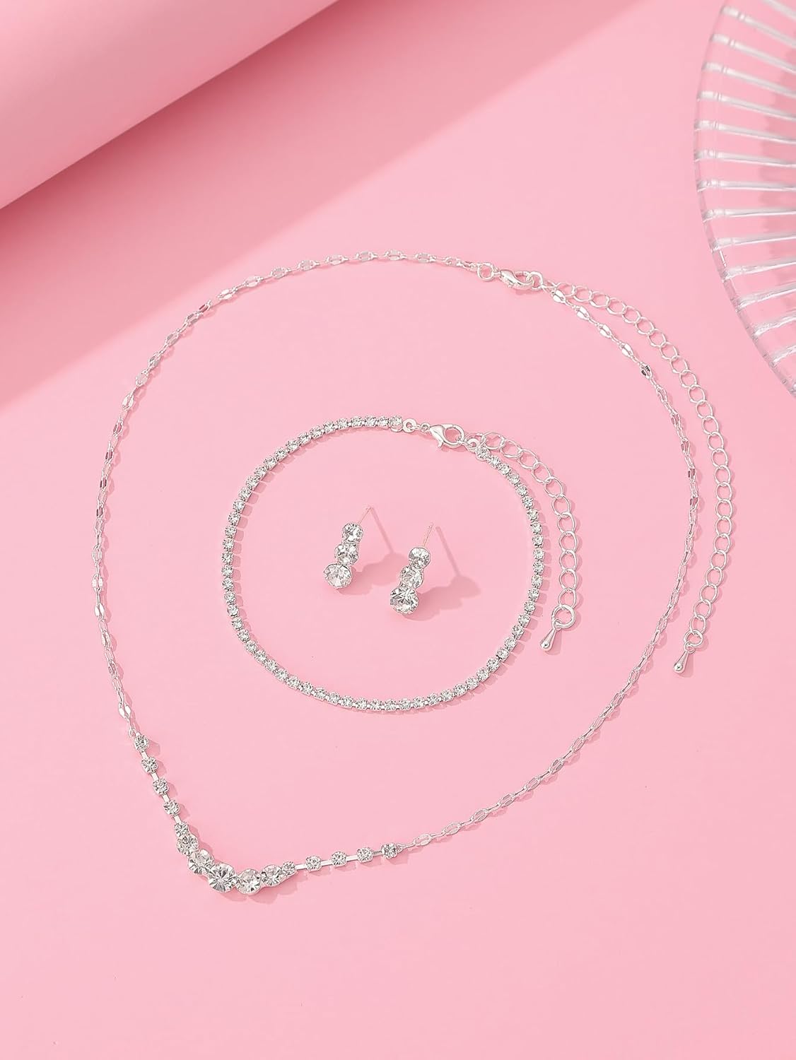 Silver/Gold Rhinestone Crystal Wedding Bridal Bridesmaids Earrings Bracelet Set for Women Brides Bridesmaids Crystal Rhinestone Bracelet Earrings Set for Wedding Bridal Prom Pageant