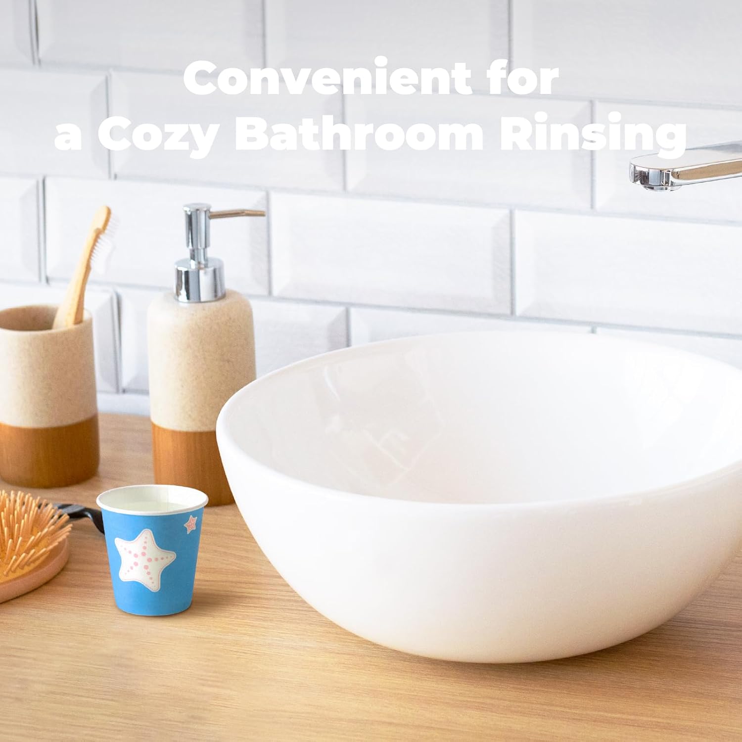 - Ocean-Themed Patterns: These 3 oz bathroom cups are decorated with bright and fun ocean animal designs, including starfish, sea turtles, shells, and conches. Perfect for adding a playful touch to any setting.