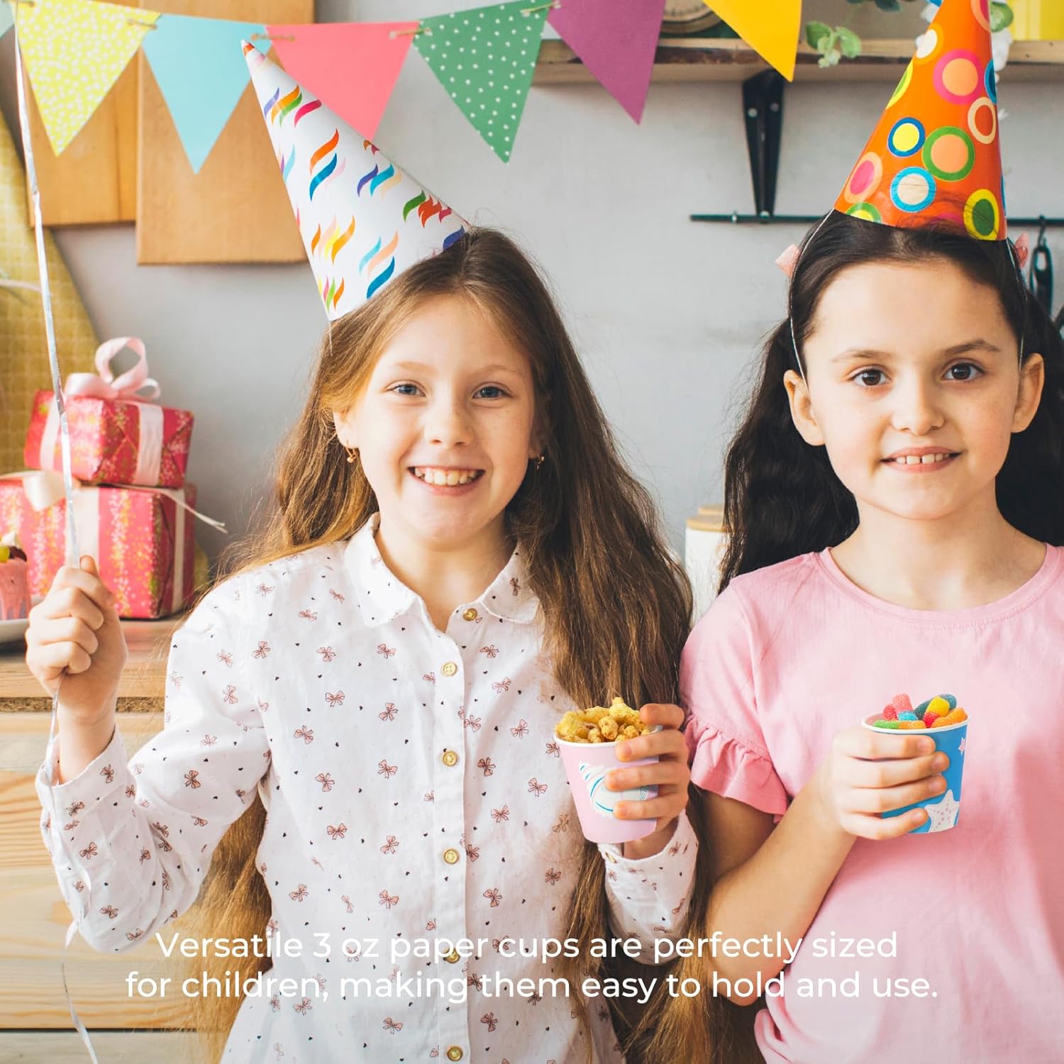 Fit Meal Prep 500 Pack 3oz Small Paper Cups, Disposable Bathroom Cups, Mini Mouthwash Cups, Pink & Blue Ocean-Themed Mini Drinkware for Parties, Events and Travel