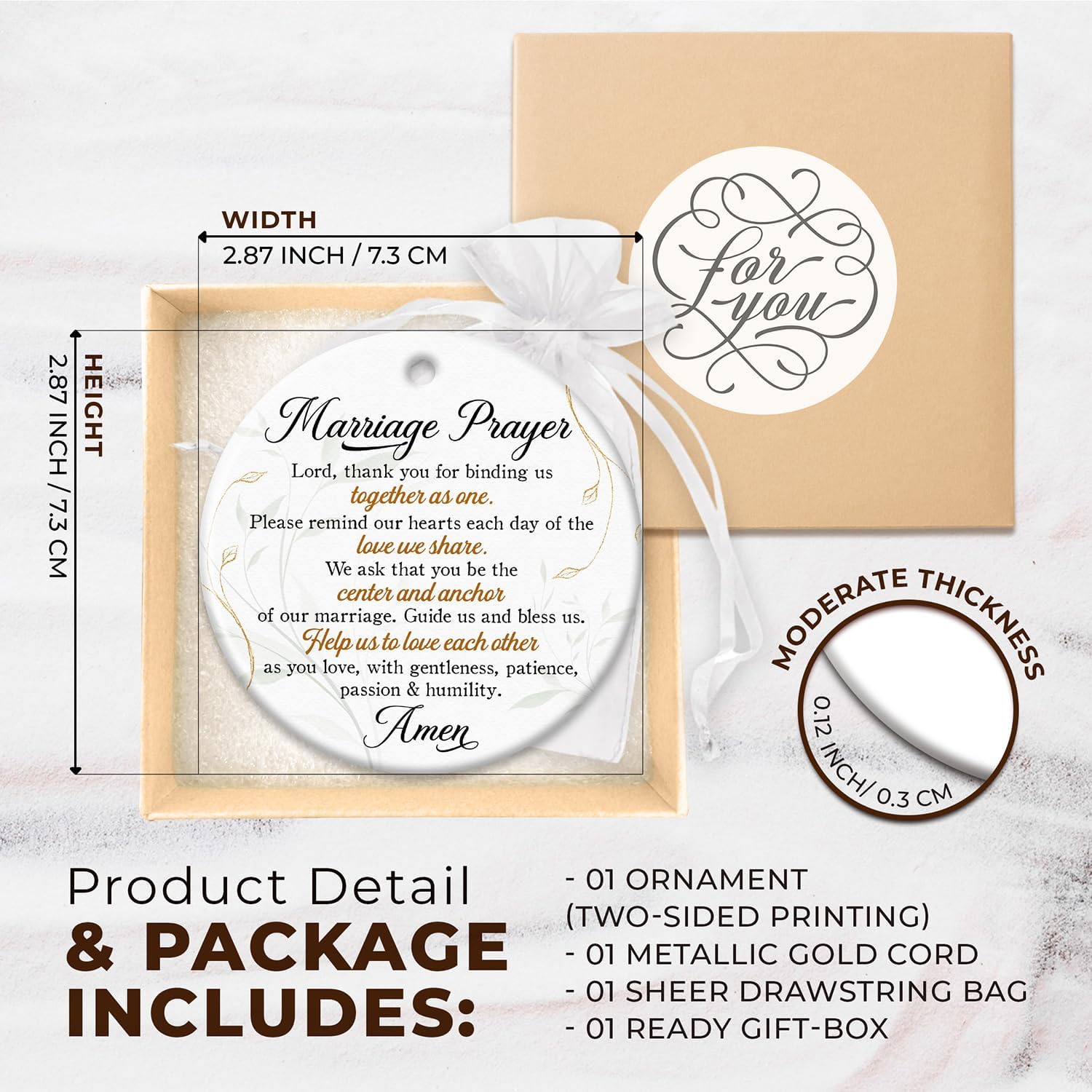 - CHRISTIAN WEDDING GIFTS: A Marriage Prayer ornament is a meaningful way to bless and support the couple on their new journey. It’s a versatile gift, perfect for weddings, anniversaries, or thoughtful surprises, and pairs beautifully with other faith-based gifts like a devotional book or a framed photo. Suitable as bridal shower gifts, wedding anniversary gifts for couple, wedding registry gift ideas, christian gifts for couples