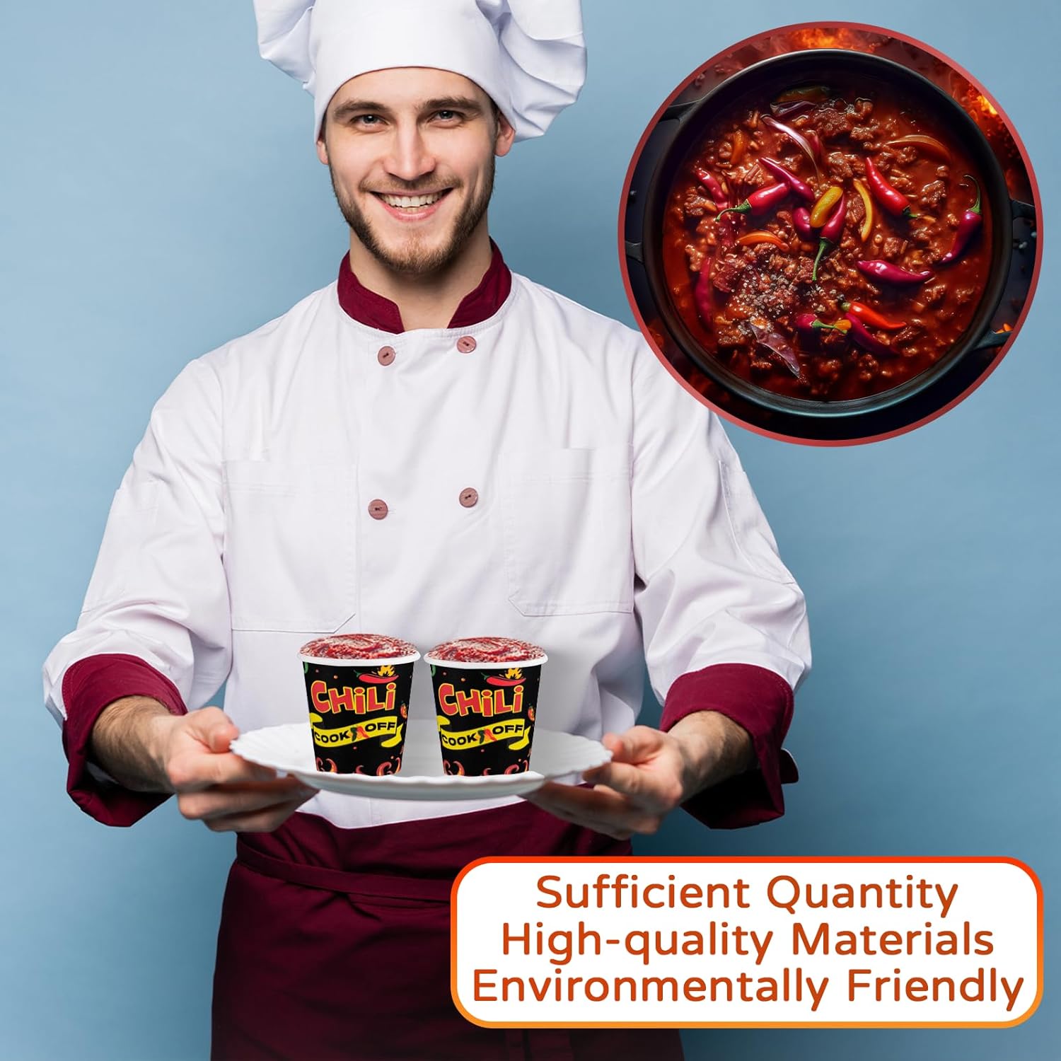 - Chili cook-off party: Whether it's a warm little chili cook-off with friends, or a big gathering celebration in the community, the 300 chili cook-off tasting cups in this set are easy to handle, enough to ensure that everyone can enjoy the unique flavor of chili, which is ideal for hosting any kind of chili themed party