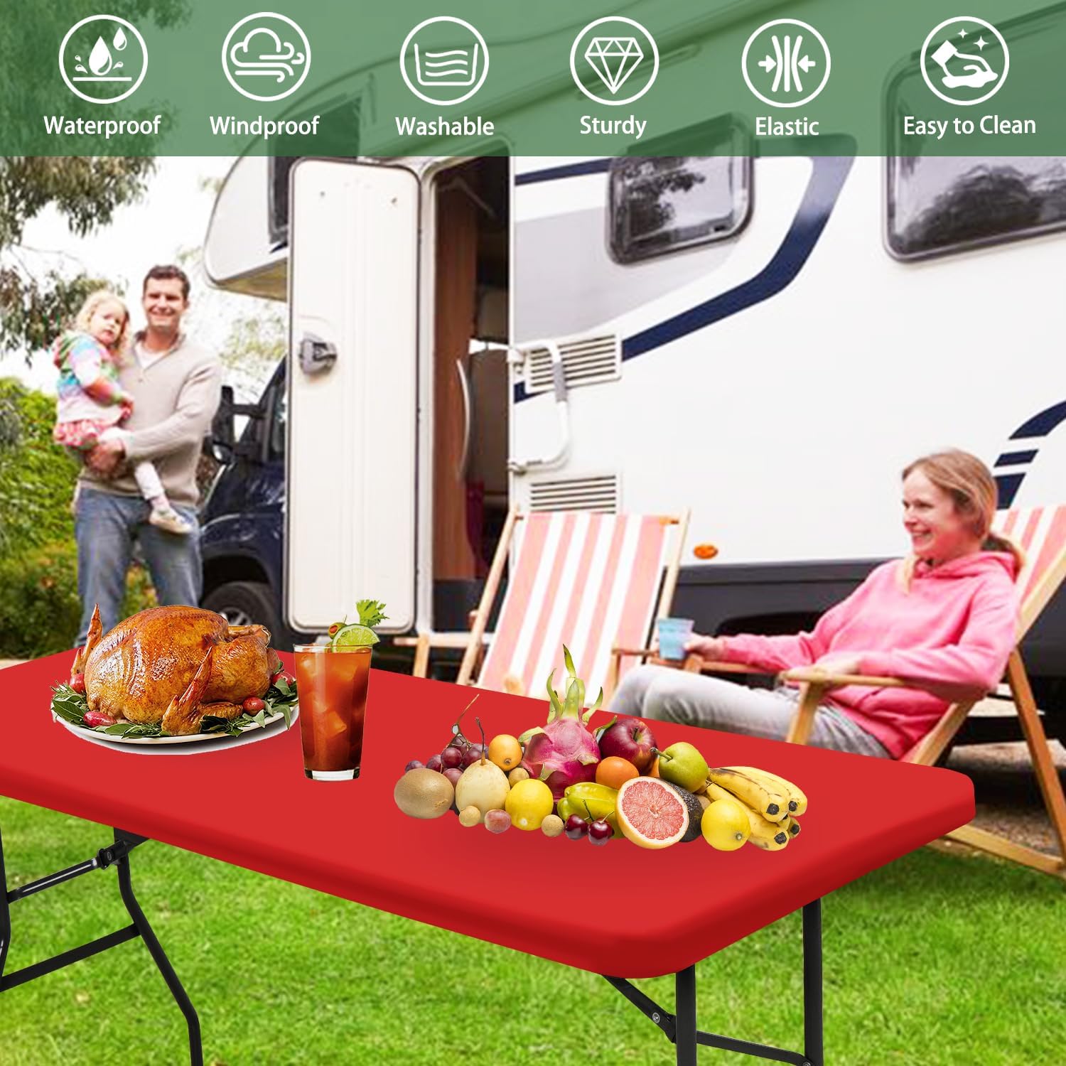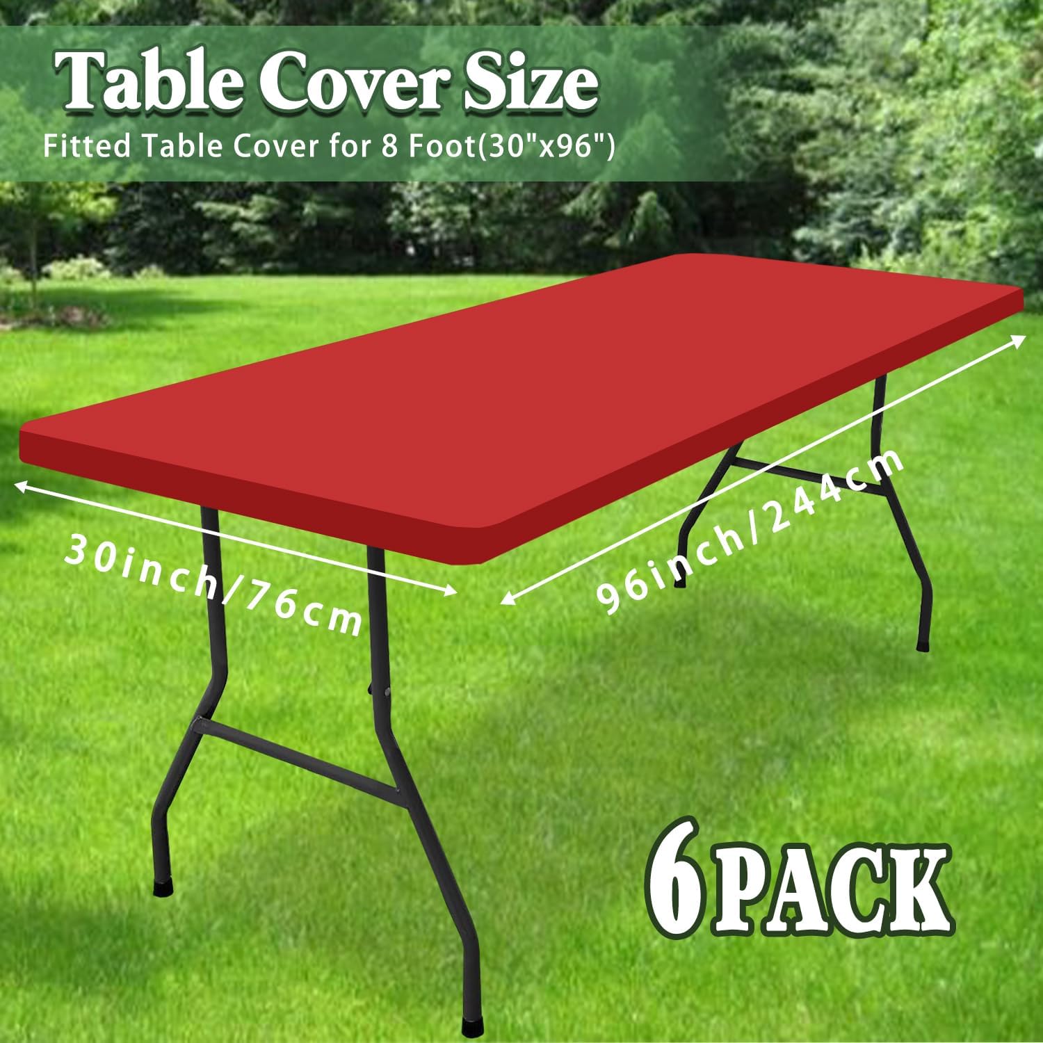 6 Pack Picnic Fitted Table Cover for 8 Foot Tablecloth for Rectangle Tables Waterproof Stretch Washable Folding Indoor and Outdoor Spandex Table Cloth for Camping Banquet and Parties (Red,30" x 96")