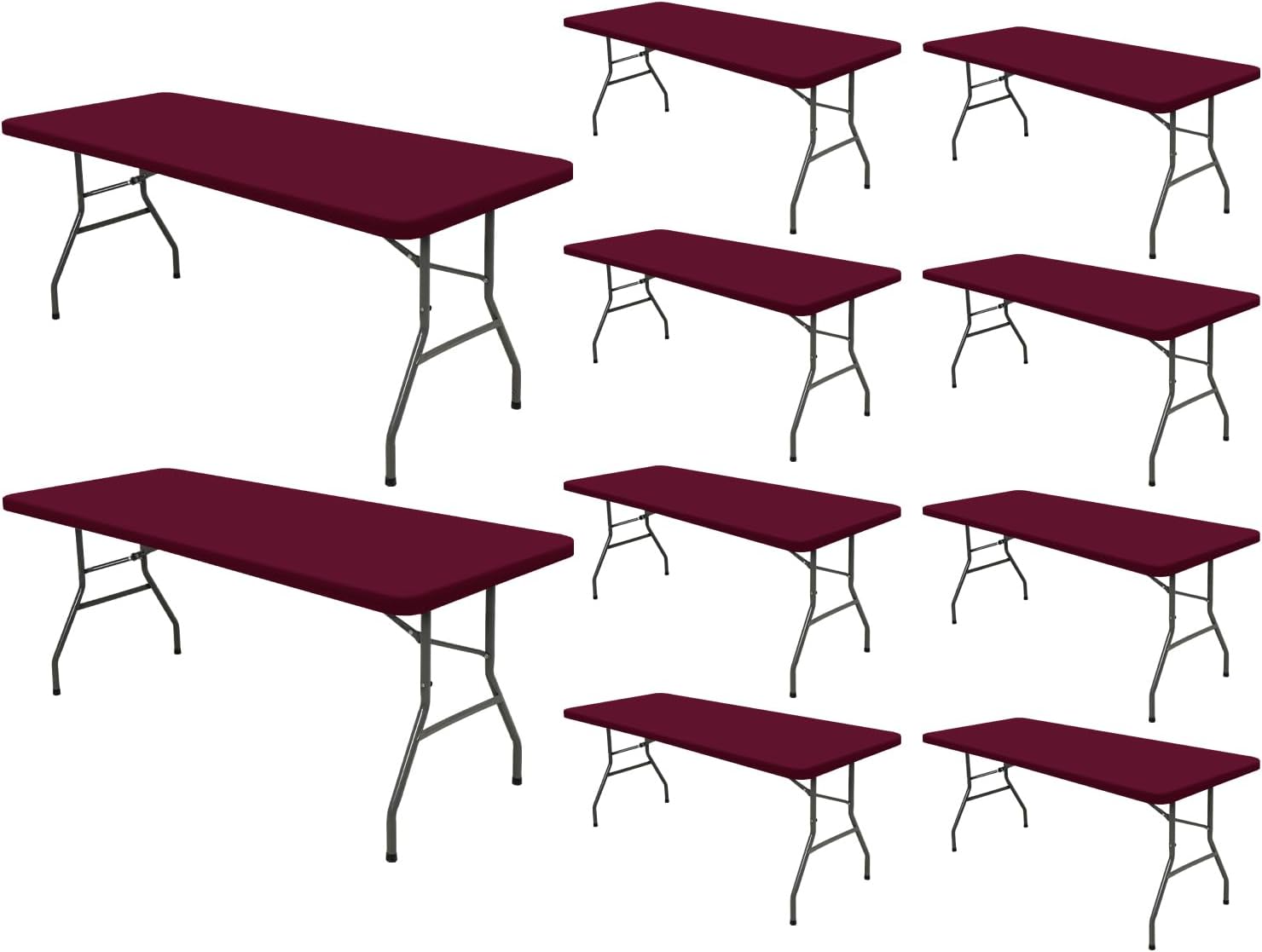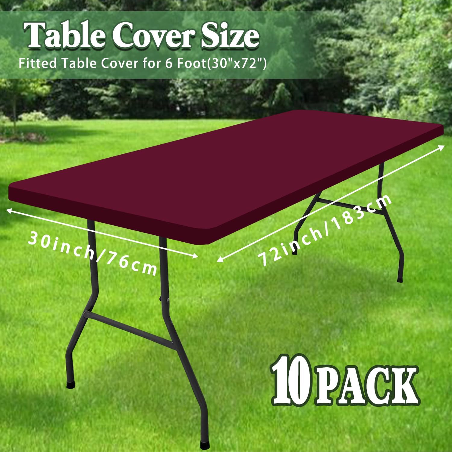 6 Foot Picnic Table Cover Fitted 10 Pack Elastic Tablecloth for Rectangle Tables Waterproof Stretch Washable Folding Indoor Outdoor Spandex Table Cloth for Parties Banquet Camping (Wine Red,30" x 72")