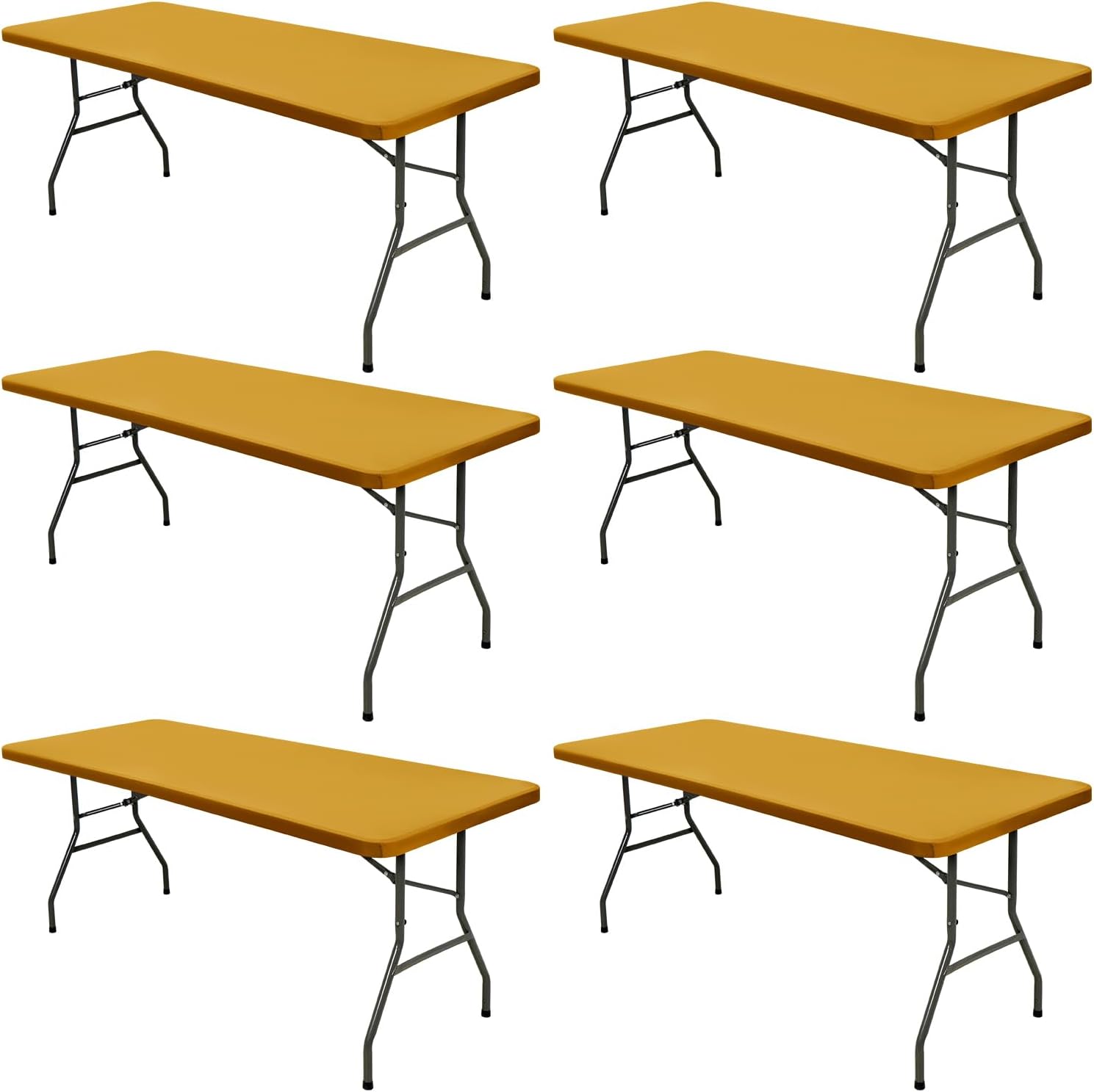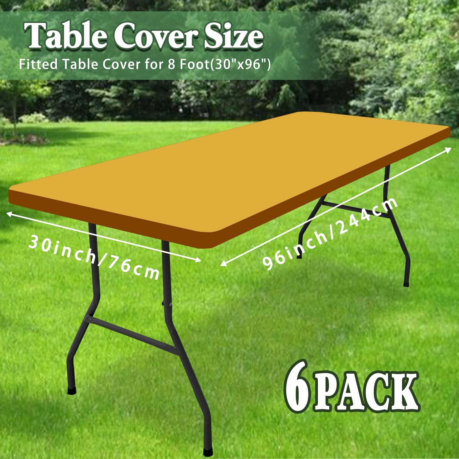 6 Pack 8 Foot Picnic Table Cover Fitted Outdoor Tablecloth for Rectangle Tables Elastic Waterproof Stretch Washable Patio Folding Spandex Table Cloth for Camping Banquet Parties (Mustard,30" x 96")