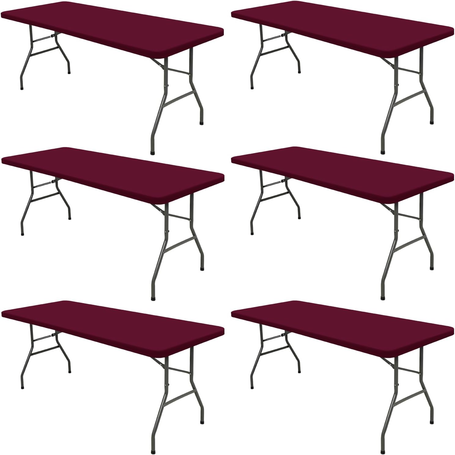 6 Pack 8 Foot Picnic Table Cover Fitted Elastic Tablecloth for Rectangle Tables Waterproof Stretch Washable Folding Indoor Outdoor Spandex Table Cloth for Parties Banquet Camping (Wine Red,30" x 96")