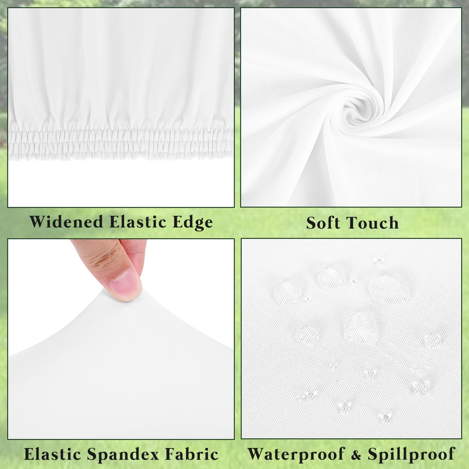- Stretch Elastic Materia:The elastic fabric of the white table cover can tightly fit the tabletop, making it more beautiful in appearance, without wrinkles, smooth and flat. The elastic design can also prevent tableware from scratching, always keeping the tabletop flat and clean.