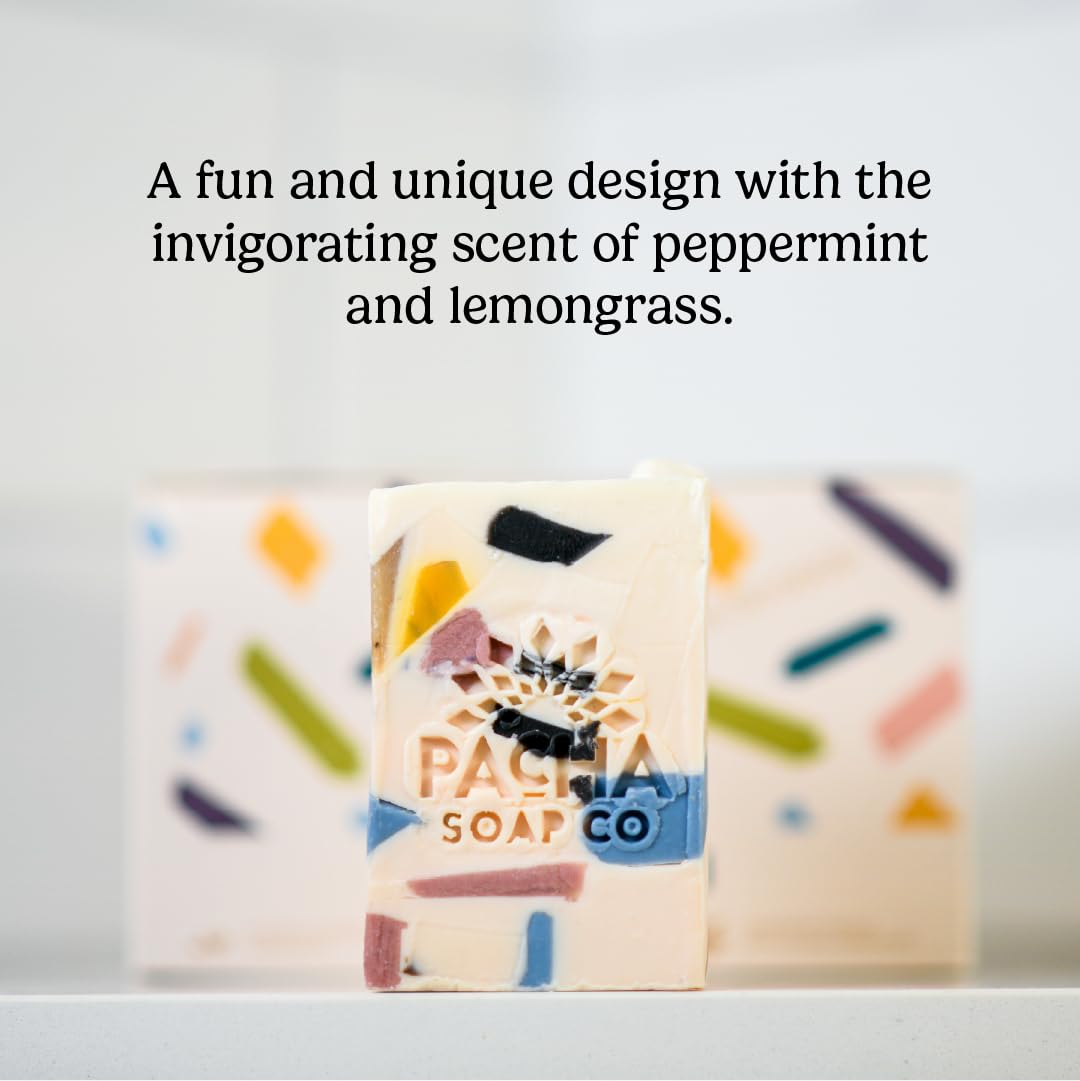 Pacha Soap Co. Bar Soap, Pachafetti, 3-Pack (4 oz ea) - Scents of Lemongrass & Peppermint, Premium, Handcrafted, Hydrating, Natural Face Wash, Hand Cleanser, Body Wash, Soothing Essential Oils