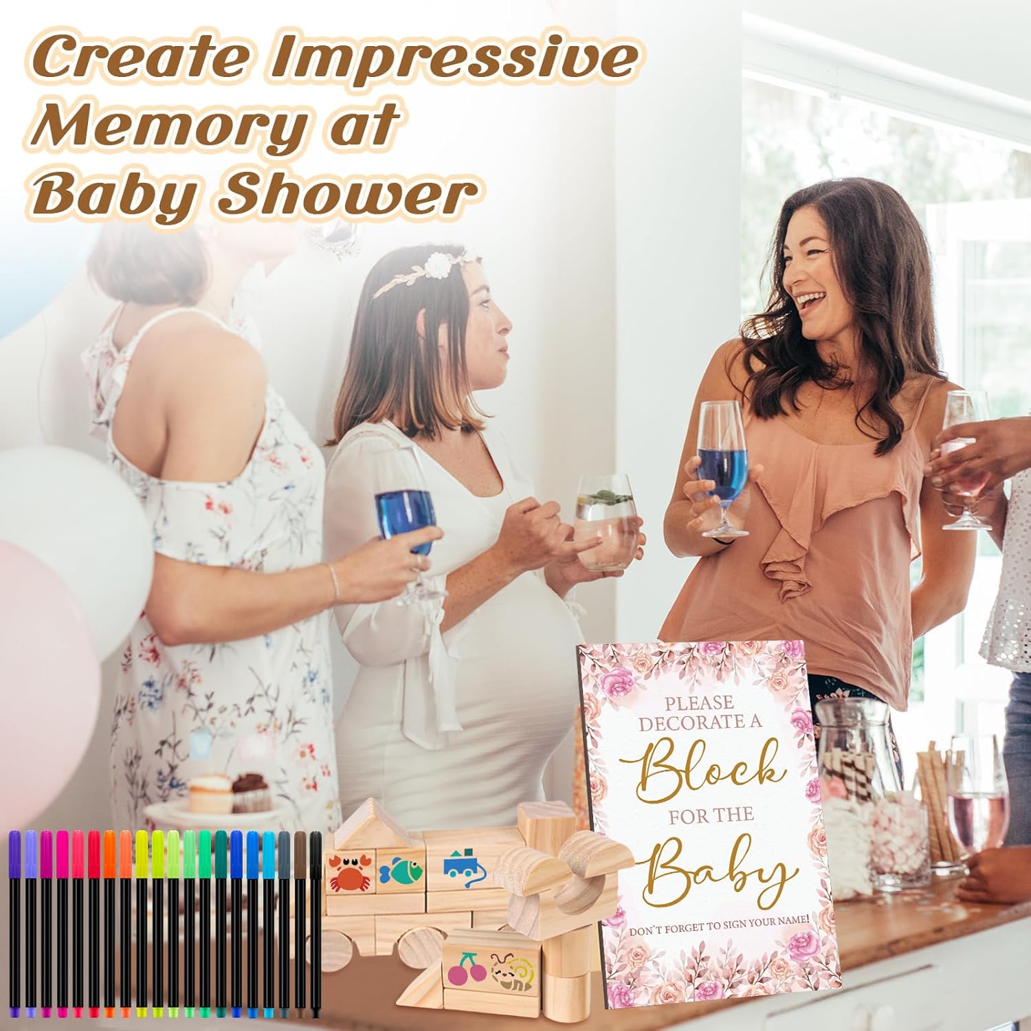 - BABY SHOWER BLOCKS PLAY SET: You will receive 1 wooden sign, 100 small wooden blocks, 20 markers in different colors, 20 sheets of modules for free, rich quantity and beautiful combination to meet your crafting needs.