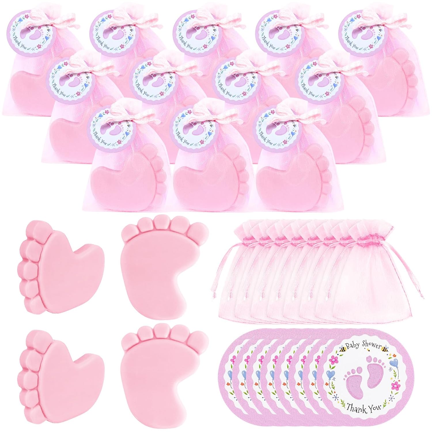 30 Sets Baby Shower Favors Refreshing Feet Soap Perfect for Guests Gifts with Organza Bags Thanks Cards Birthday Party Decoration Game Prizes(pink)