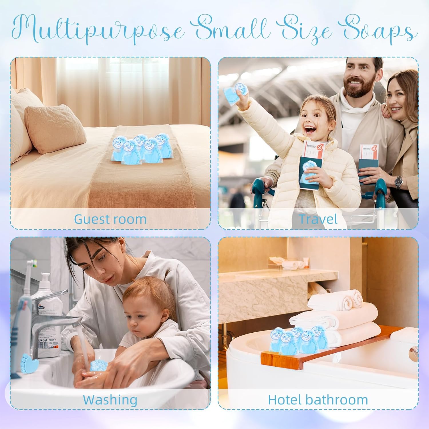 - 【Size】These cute soaps come in an attractive shade of blue and measure around 2.28 x 1.81 inches; Packed individually in organza drawstring bags which are convenient to carry and use, and the bags measure around 2.75 x 3.54 inches, making them practically sized