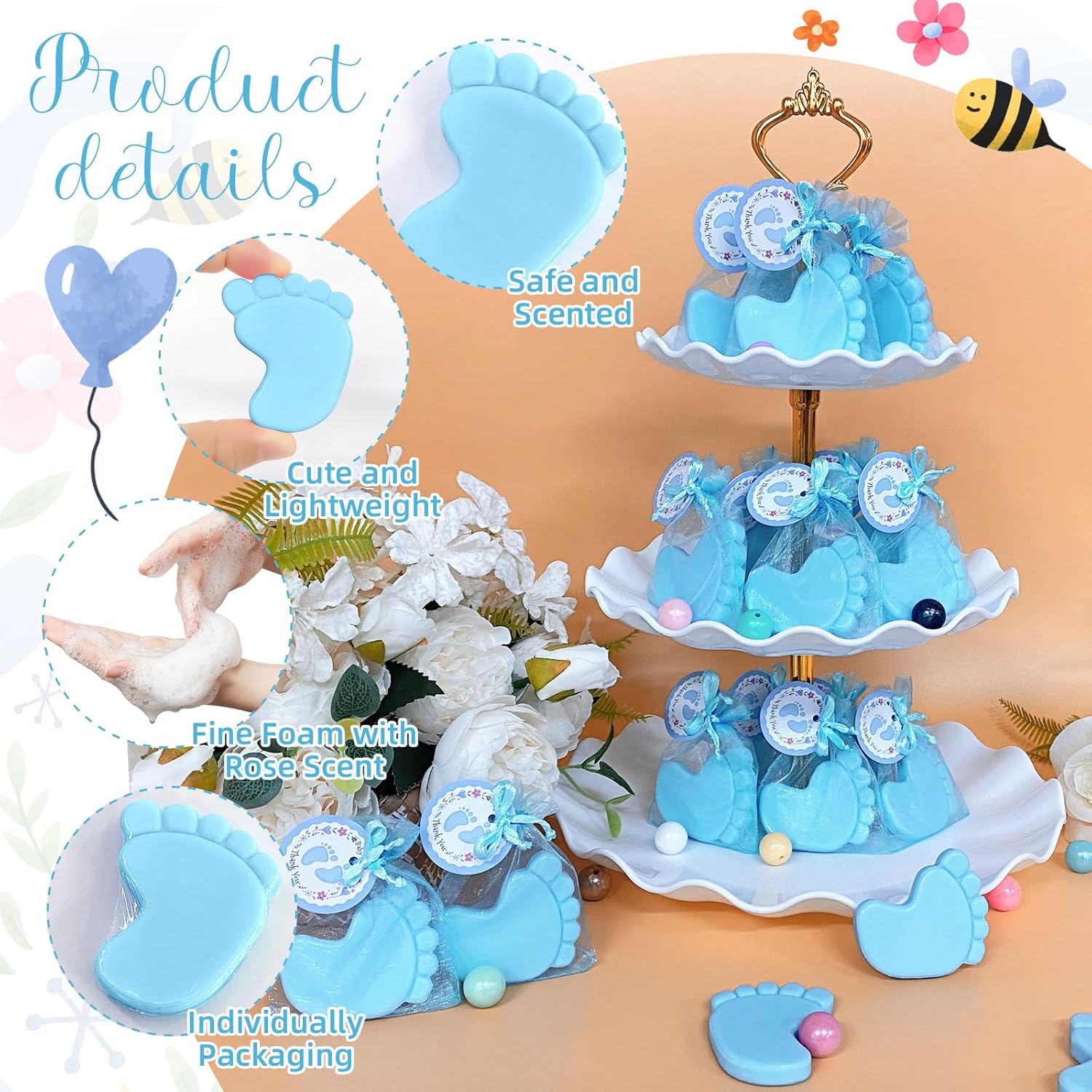 30 Sets Baby Shower Favors Refreshing Feet Soap Perfect for Guests Gifts with Organza Bags Thanks Cards Birthday Party Decoration Game Prizes(blue)